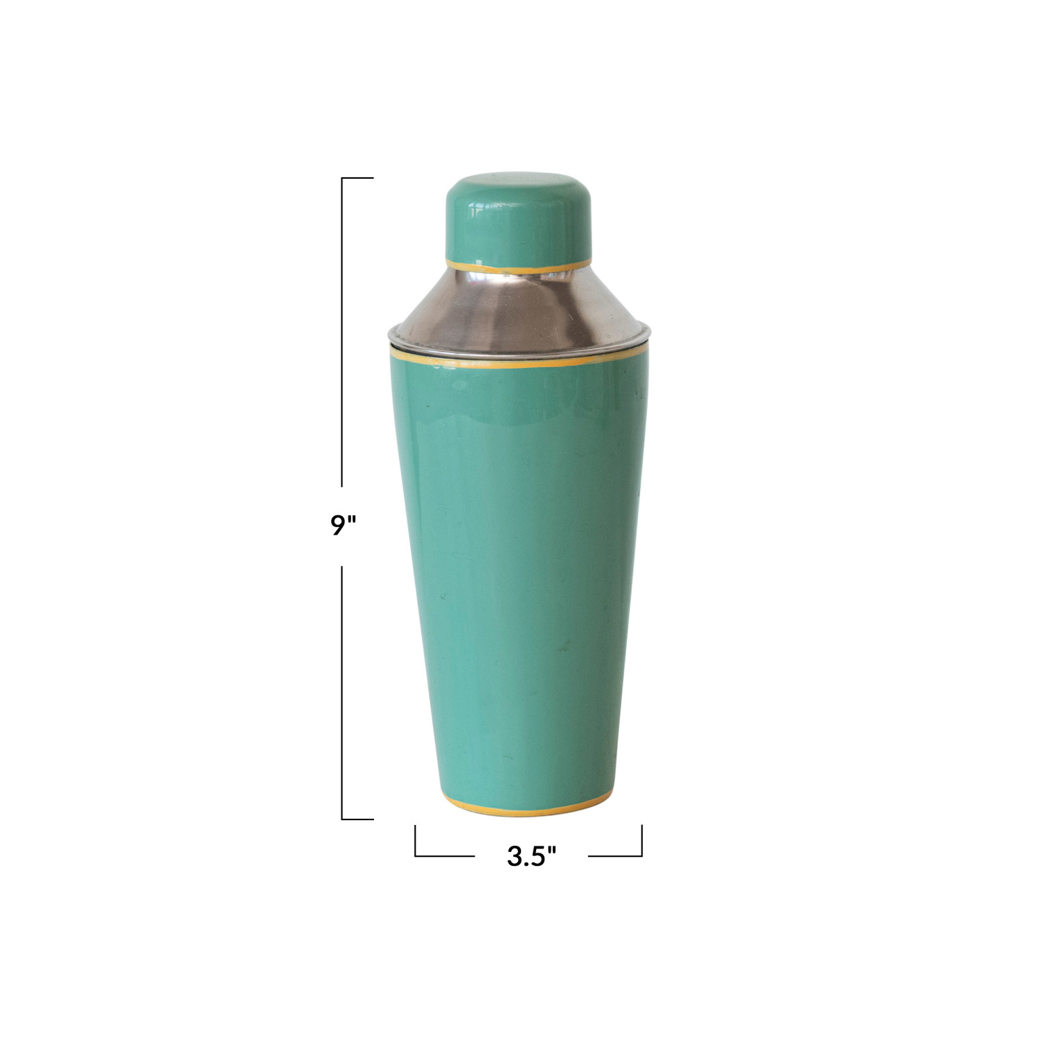 Catalog Name: 3-1/2" Round x 9"H 20 oz. Enameled Stainless Steel Cocktail Shaker w/ Colored Rim, Turquoise Color & Yellow