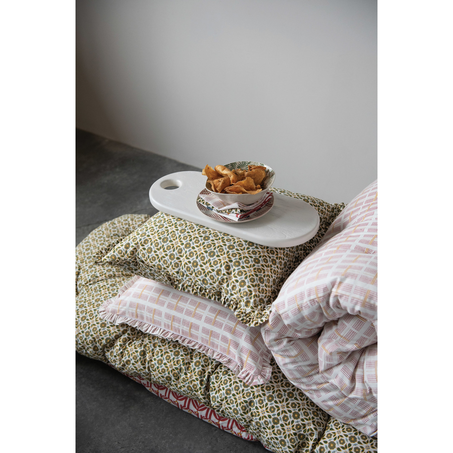 This cheese/serving board is a beautiful addition to any kitchen. Made out of acacia wood, this board has a textured white finish and can be used to cut cheeses or serve small appetizers. This is perfect for serving friends and family in style.