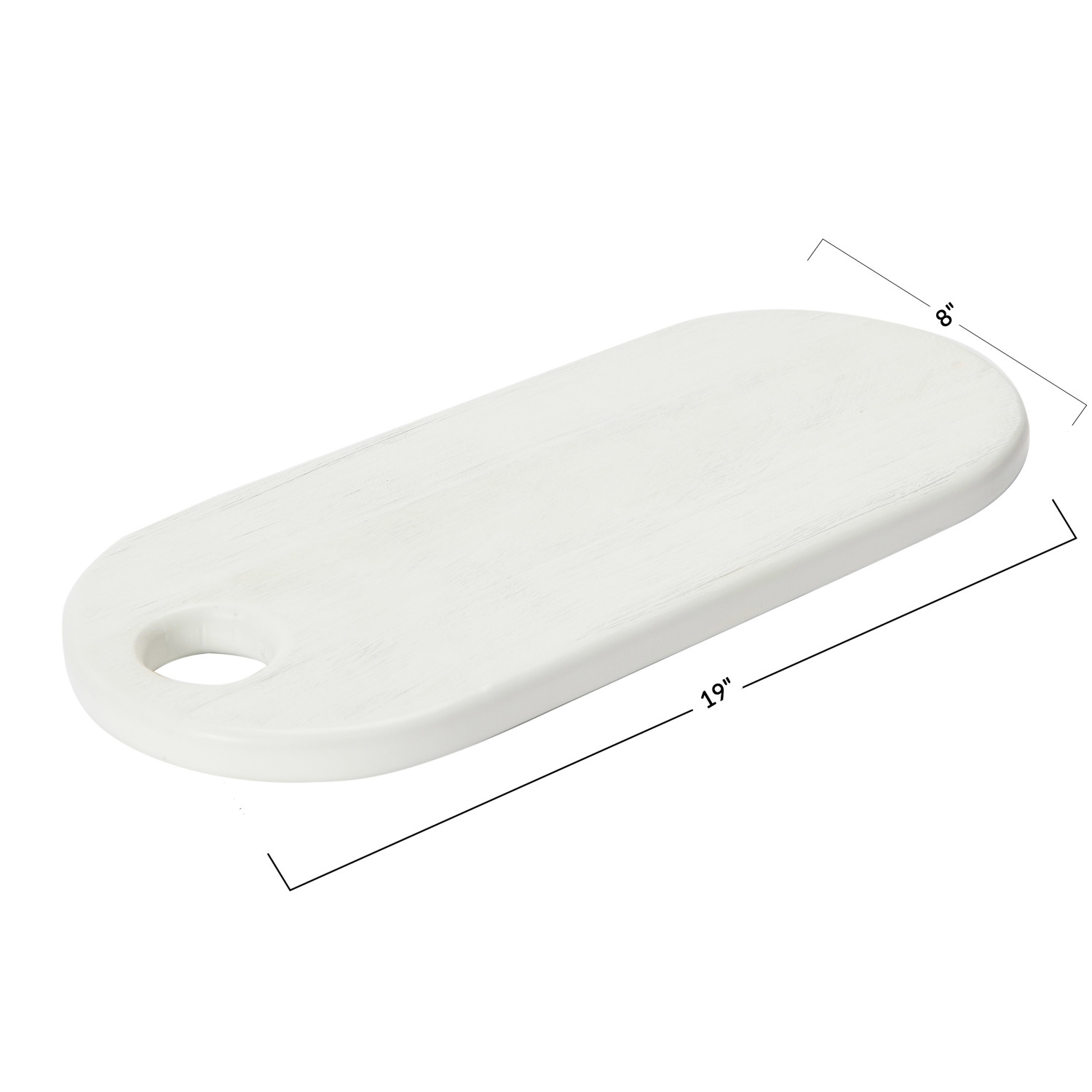 Catalog Name: 19"L x 8"W Acacia Wood Cheese/Cutting Board w/ Handle, Combed White Finish