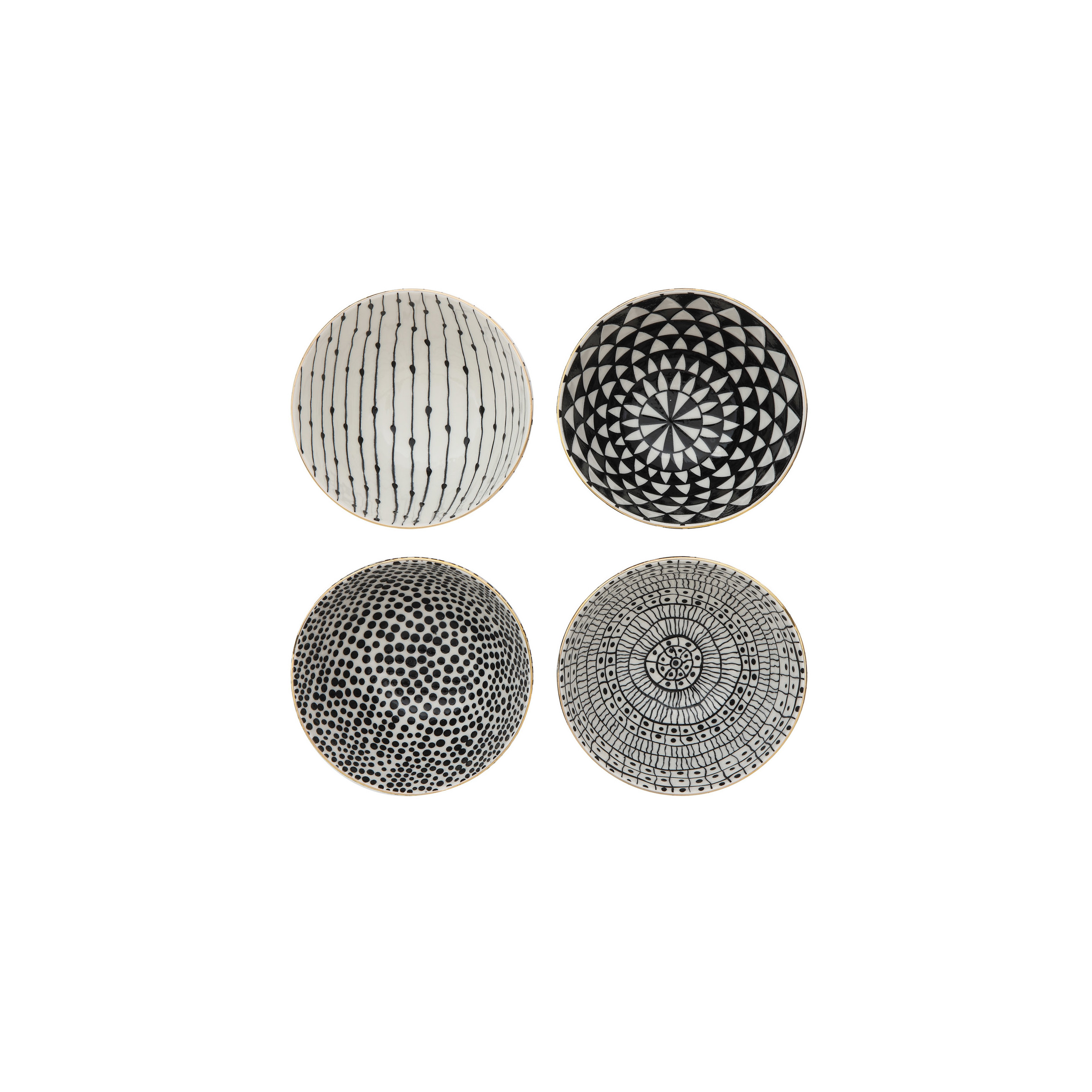 Catalog Name: 5" Round x 2-3/4"H Stoneware Bowl w/ Pattern & Gold Electroplating, Black & White, 4 Styles