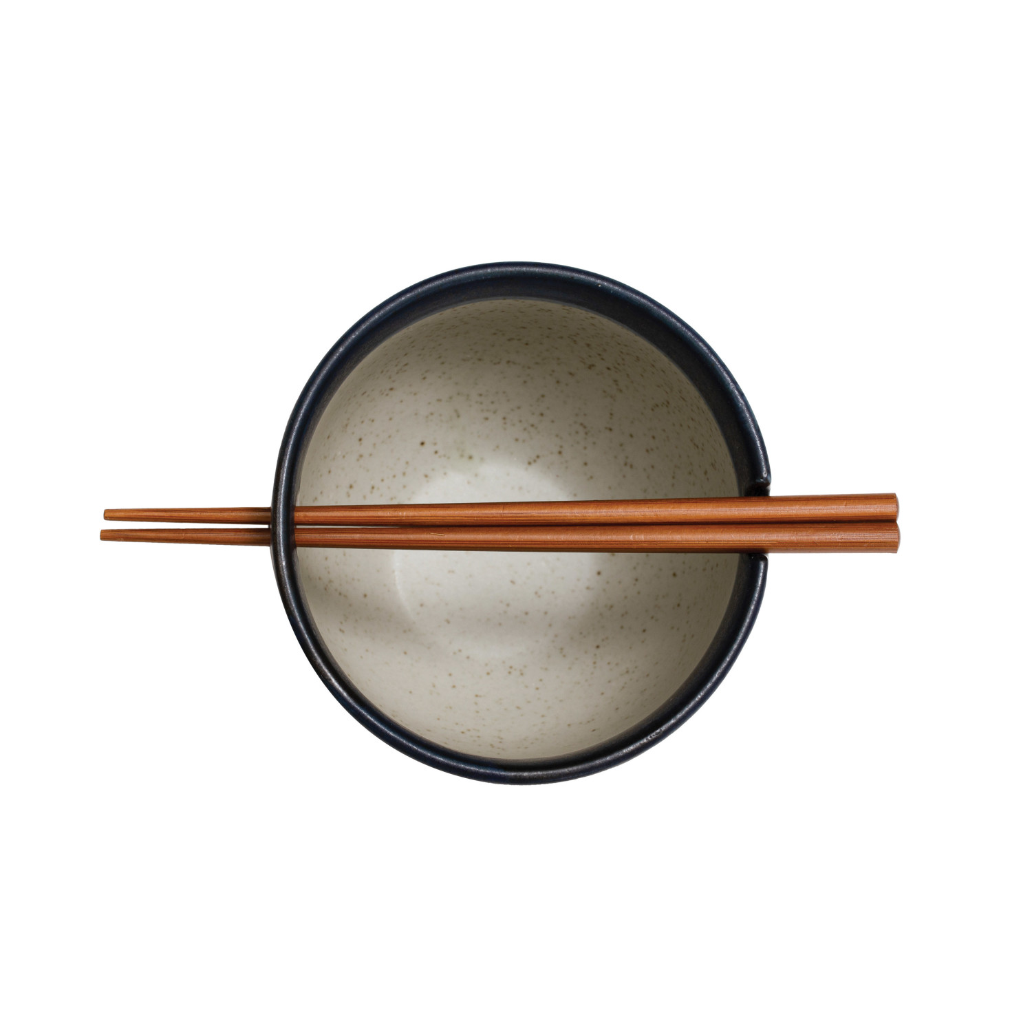 Catalog Name: 5" Round x 3-3/4"H Stoneware Bowl w/ Chopsticks & Dots, Matte Blue & Cream Color, Set of 2