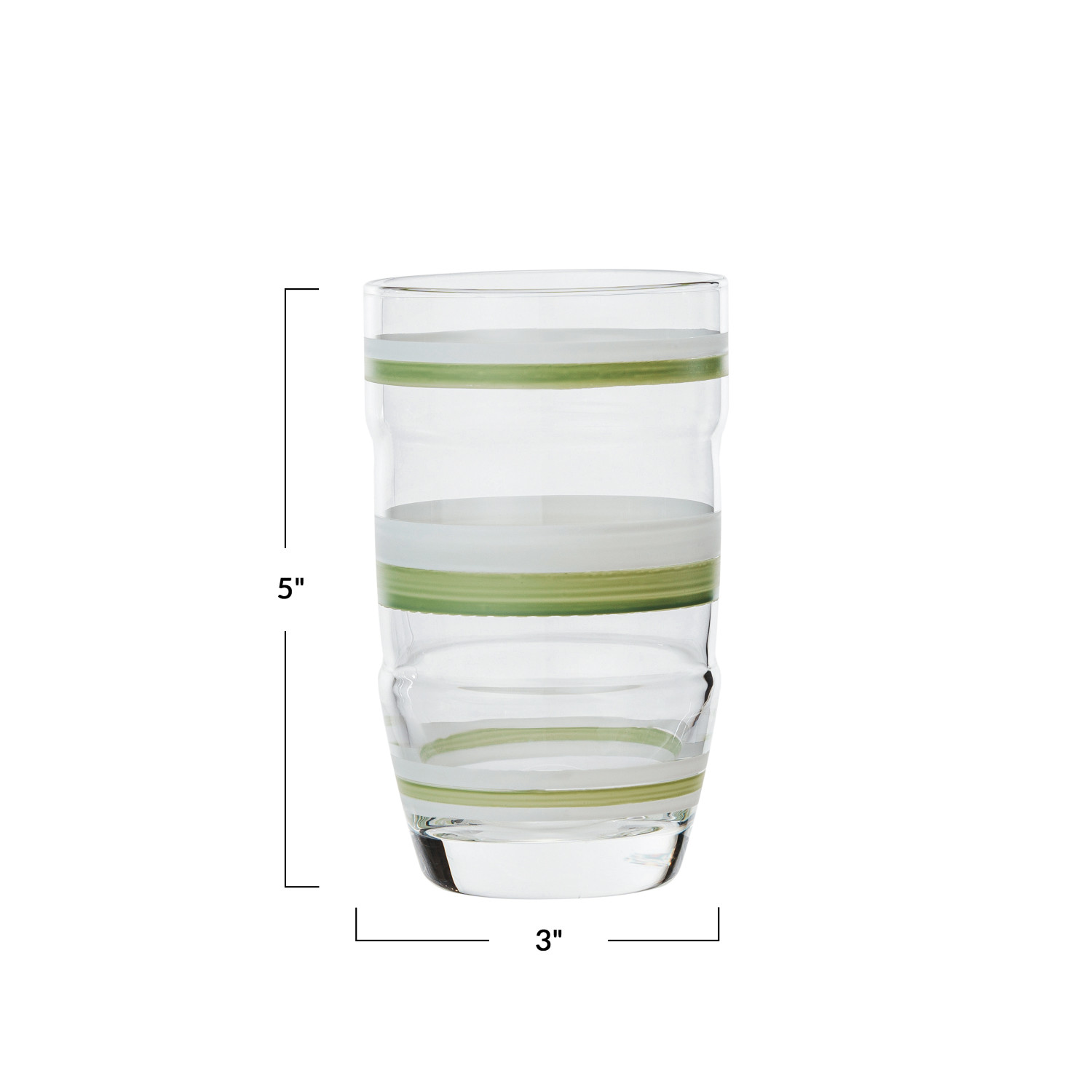 Catalog Name: 3" Round x 5"H 14 oz. Vintage Reproduction Drinking Glass w/ Hand-Painted Stripes, Green & White