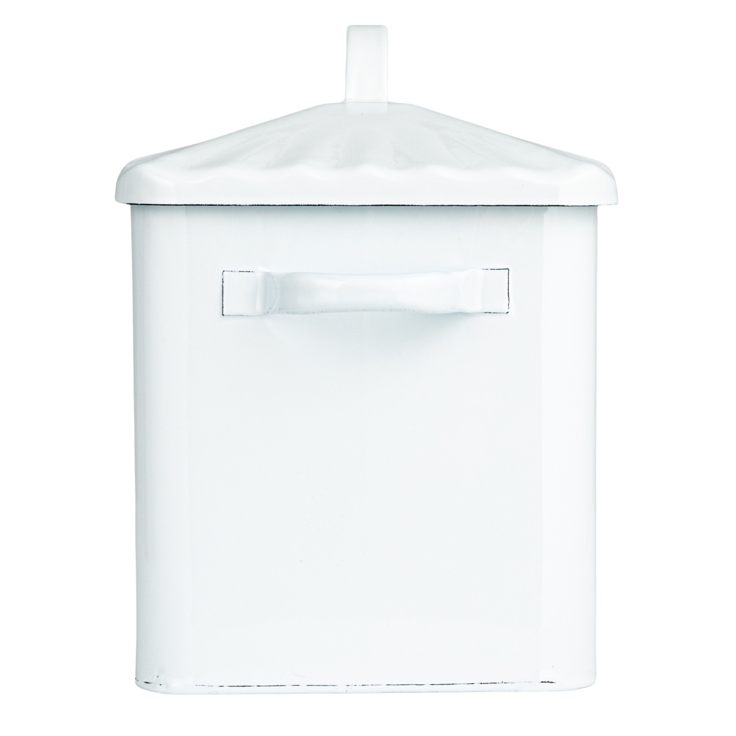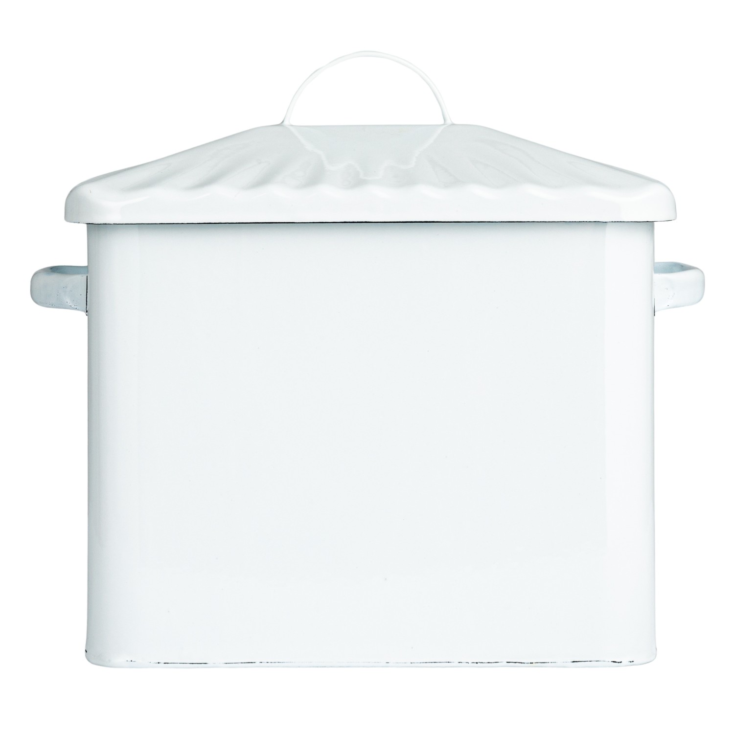 This Chic Farmhouse Enameled Bread Box is the epitome of functional elegance. The rectangular box, measuring 13.5 inches in length and 12 inches in height, is crafted from robust steel and finished with a white enamel coating. It features a scalloped lid that adds a decorative touch, while the black "Bread" text on the front offers a clear, charming label. Store various loaves of bread, bagels, or pastries in this stylish container to keep them fresh and easily accessible. The classic design of this bread box will complement any kitchen decor, making it a versatile and practical addition to the home. Designed to blend into a variety of decor styles, this bread box is not just a storage solution but a statement piece that brings a cozy, nostalgic feel to any kitchen.