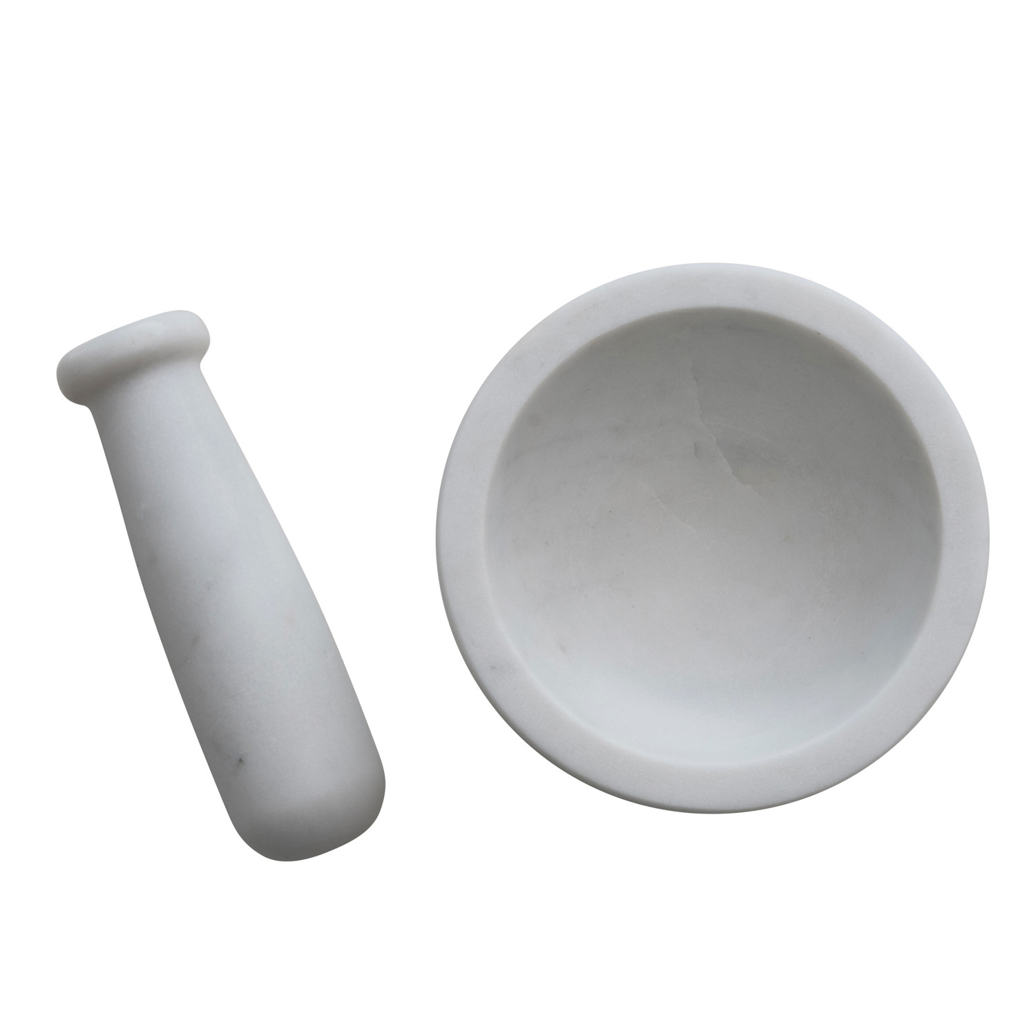 Catalog Name: 5-1/4" Round x 3-1/4"H Marble Mortar & Pestle, White, Set of 2