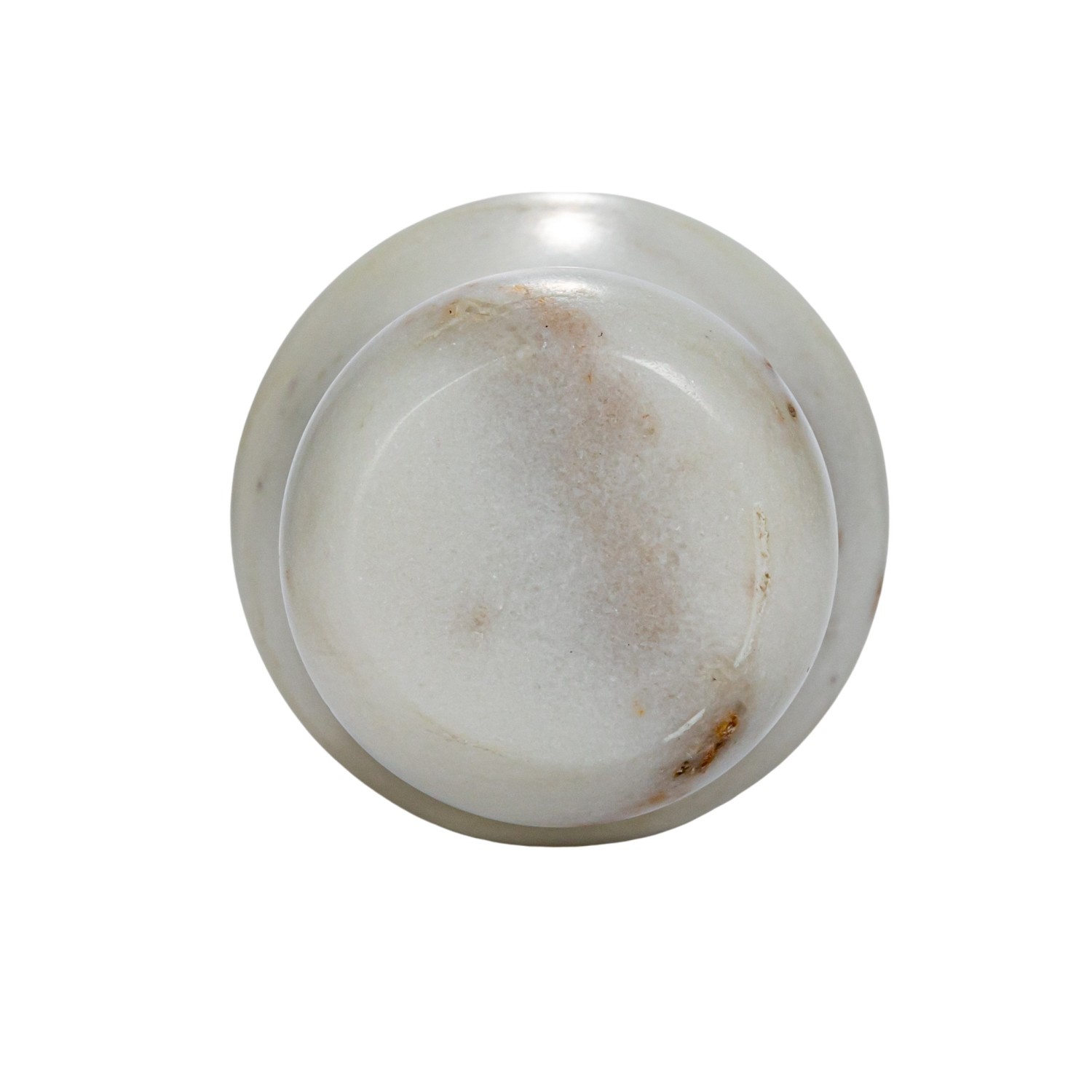 This rolling pin is a must-have for any baker or pastry chef. It is crafted from white marble, a beautiful and timeless material that adds elegance to any kitchen. The rolling pin has a round shape and a heavy weight that makes it easy to roll out dough for pies, cookies, pizzas, and more. The marble also stays cool and prevents the dough from sticking, ensuring a perfect result every time. The rolling pin can also be used to crush nuts, crackers, or ice for various recipes. The rolling pin is easy to clean and store, and it will last for years. Either making a simple or a fancy dessert, this rolling pin will help create it with ease and style.