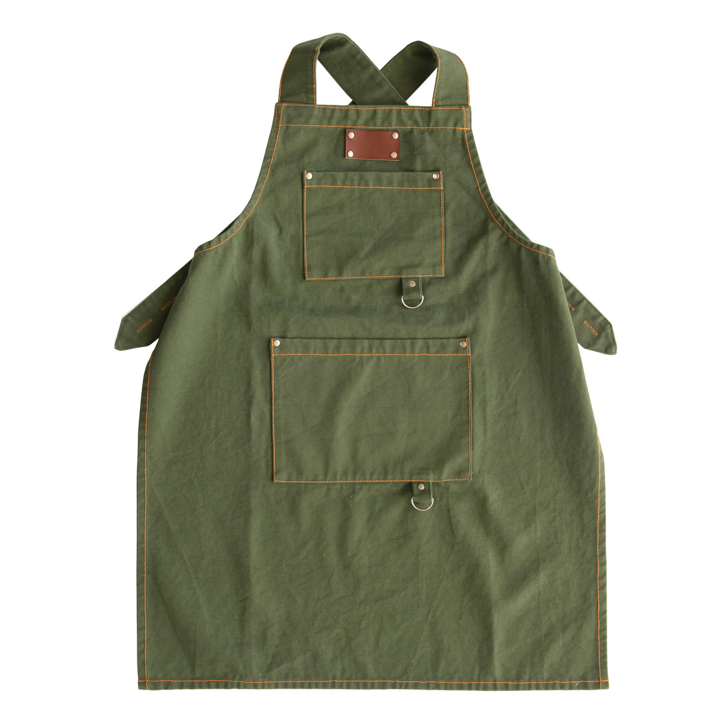 Catalog Name: 32"L x 28"W Cotton Canvas Cross Back Apron w/ 2 Pockets & Rivets, Green