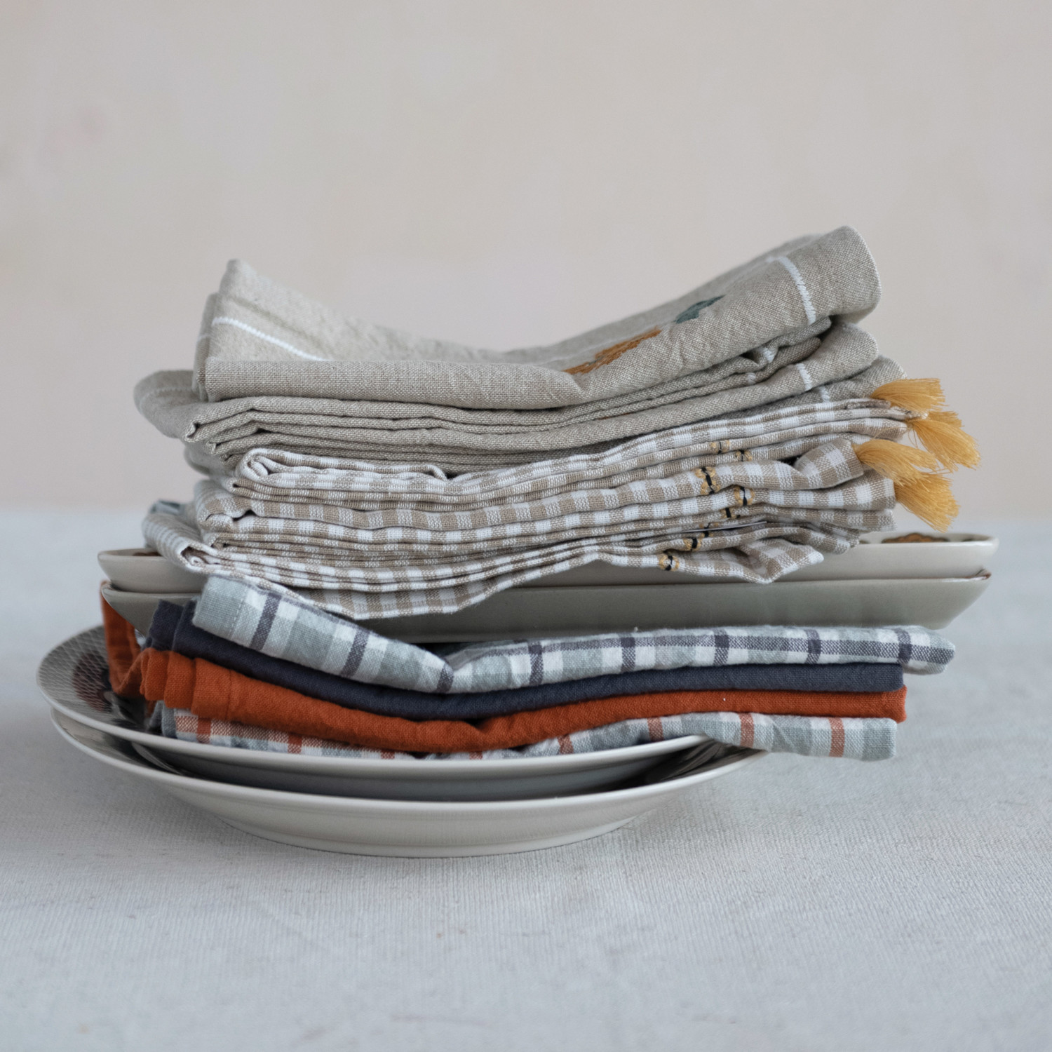 This classically designed set of cotton napkins features embroidered gingham and soft decorative tassels. Machine Wash Warm, Gentle Cycle, Do Not Bleach, Tumble Dry Low, Warm Iron if Needed.