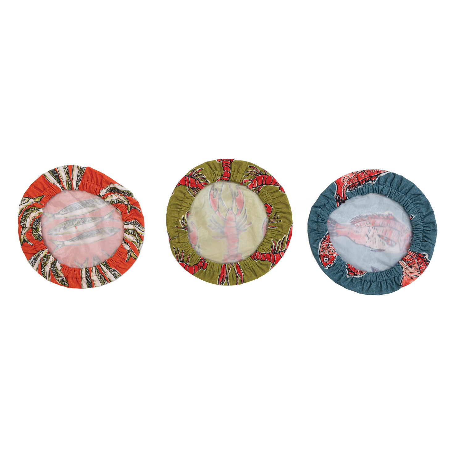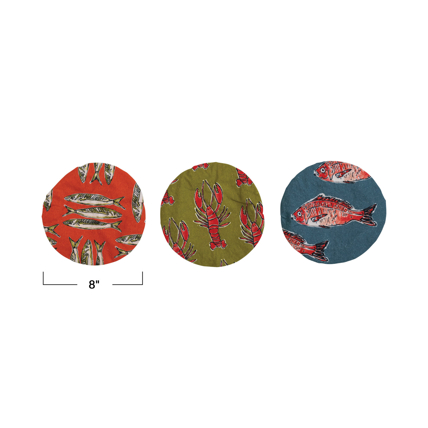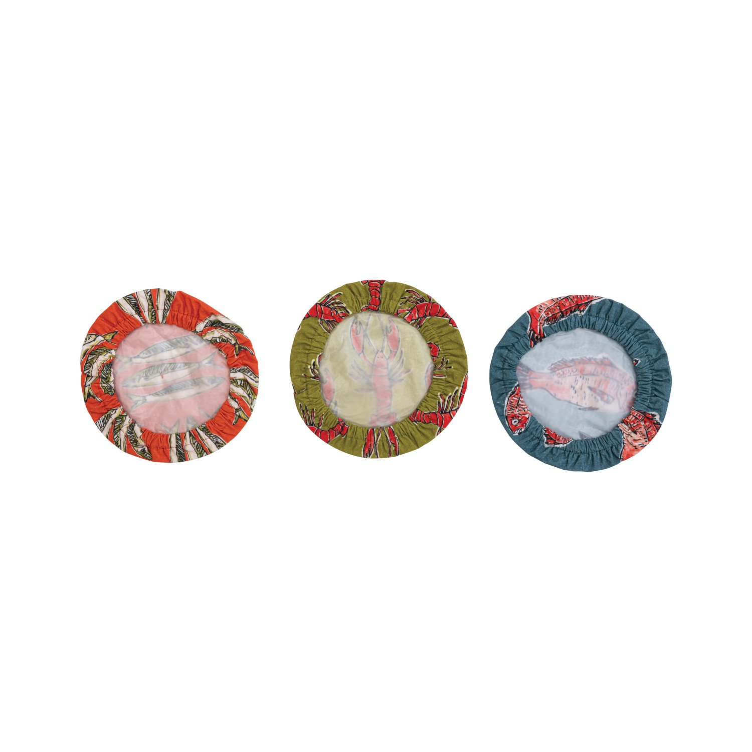 Catalog Name: 8" Round Reusable Cotton Food Cover w/ Sea Life Pattern, Multi Color, 3 Styles ©