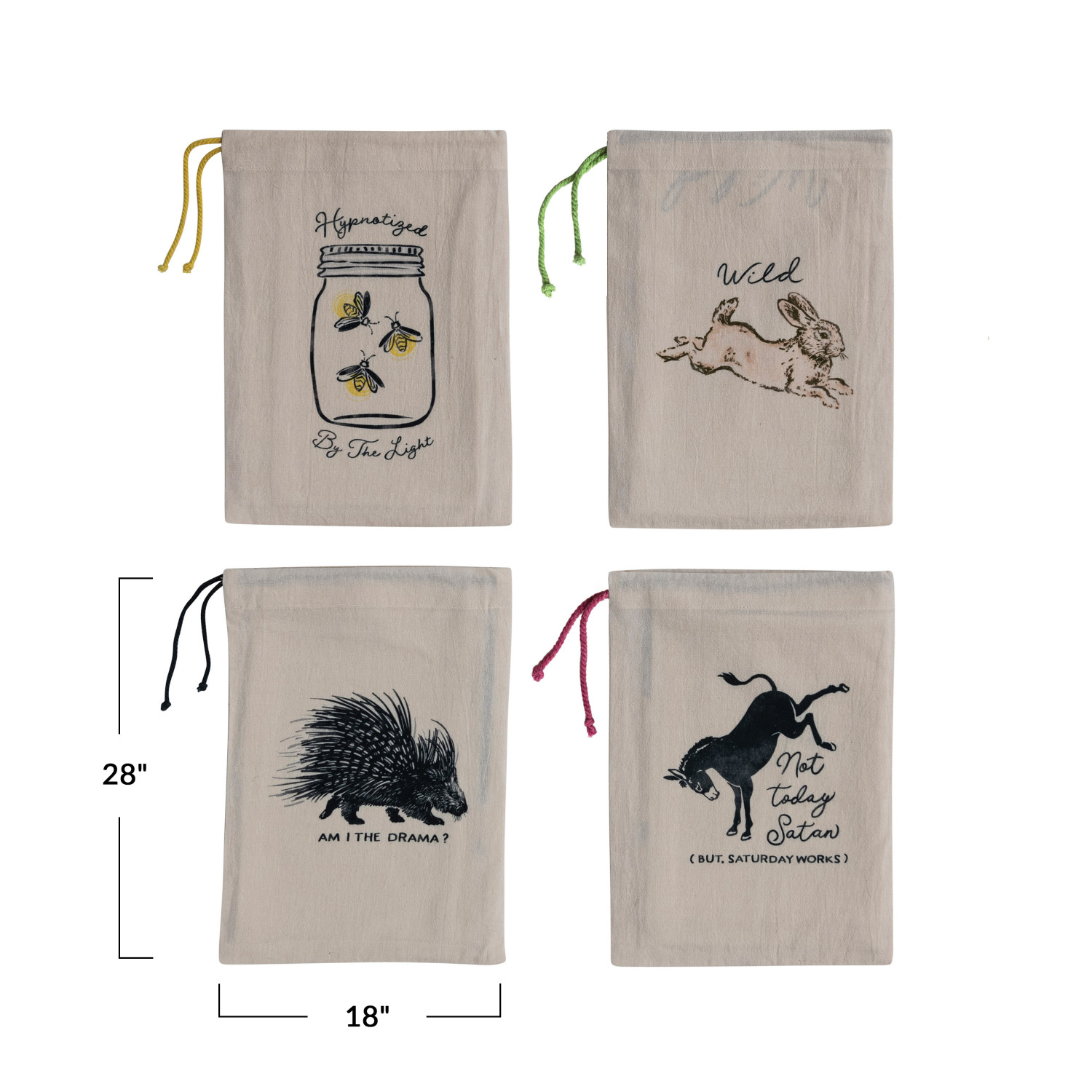 Catalog Name: 28"L x 18"W Cotton Printed Tea Towel w/ Animal & Saying in Printed Drawstring Bag, Multi Color, 4 Styles ©