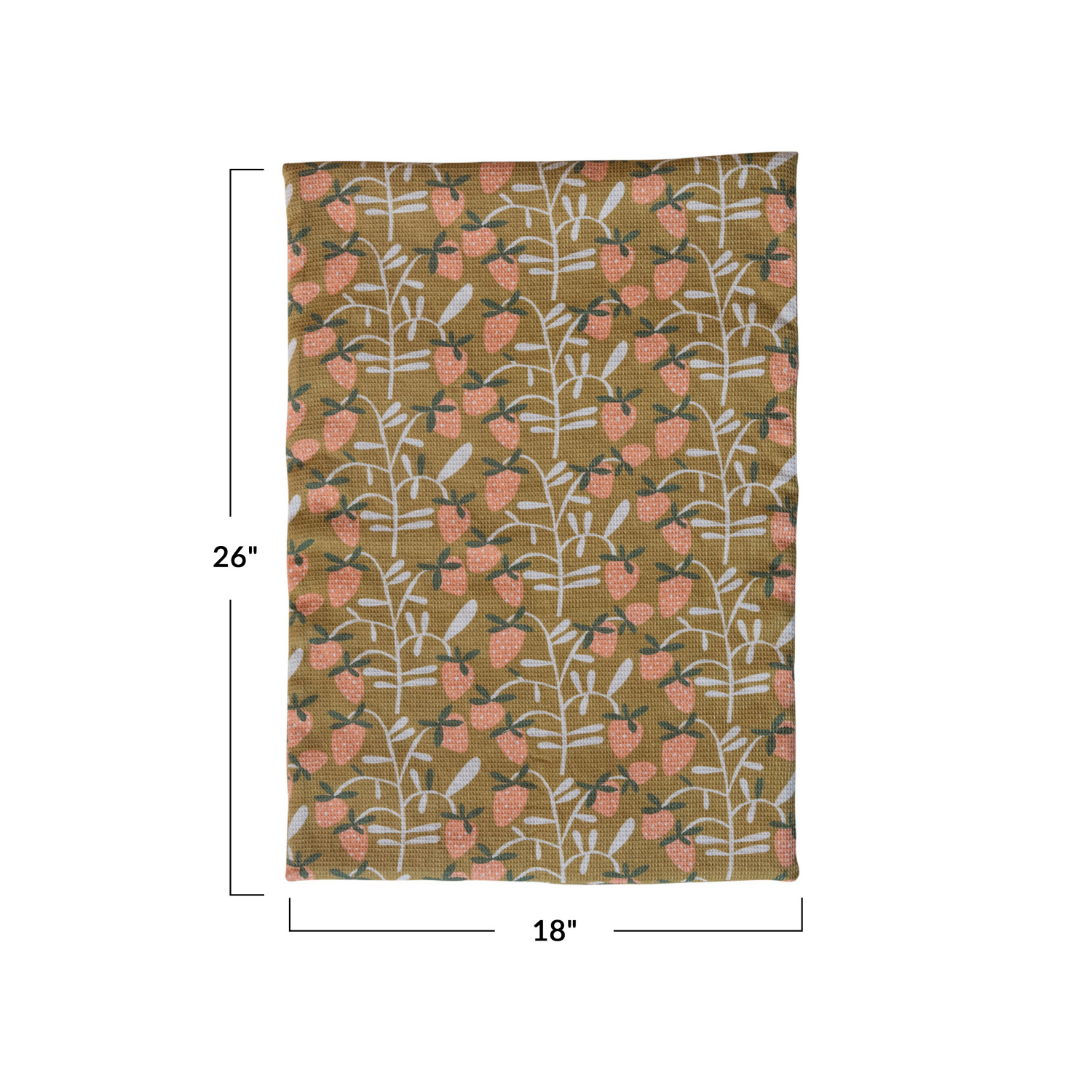 Catalog Name: 26"L x 18"W Cotton Printed Dish Drying Mat w/ Quilted Terry Cloth Insert, 3 Coconut Shell Buttons & Strawberries Pattern, Multi Color ©