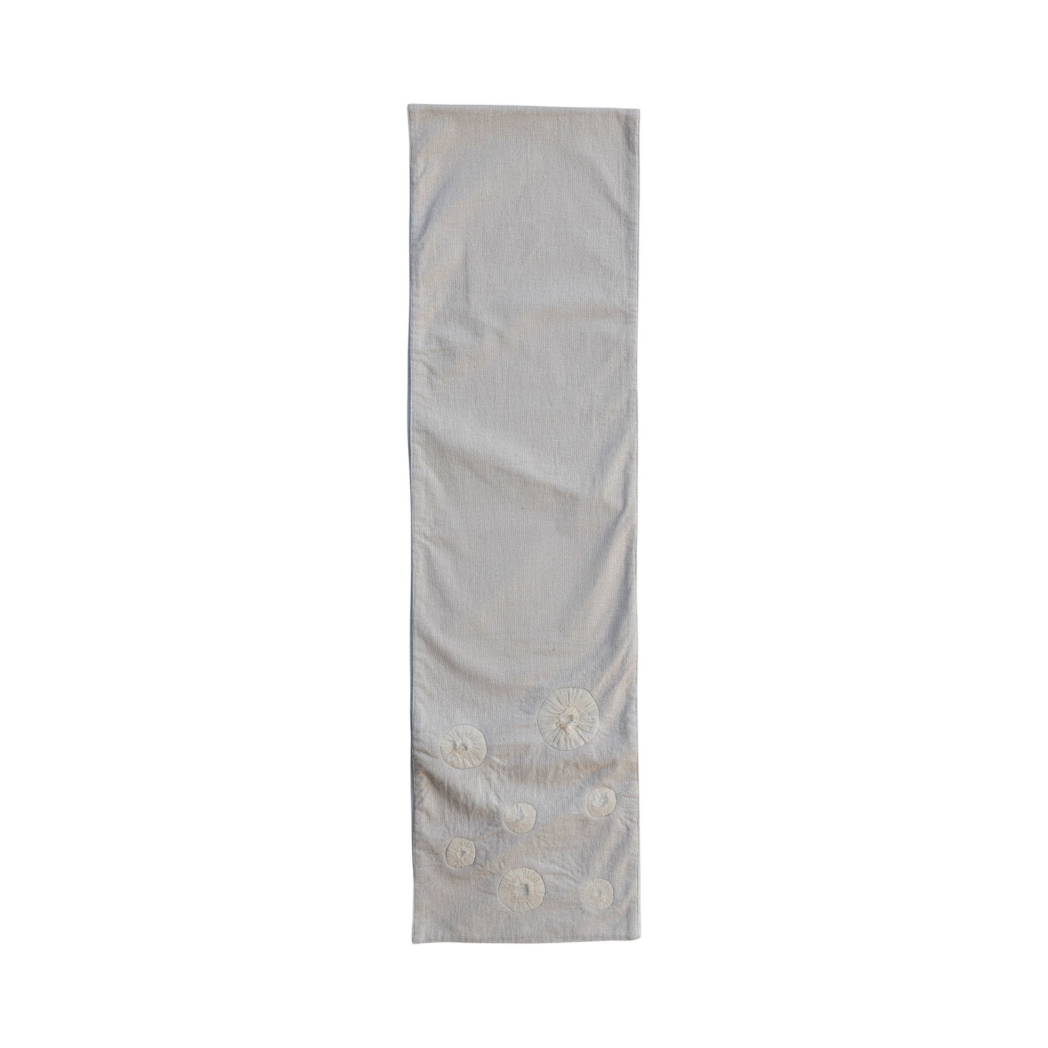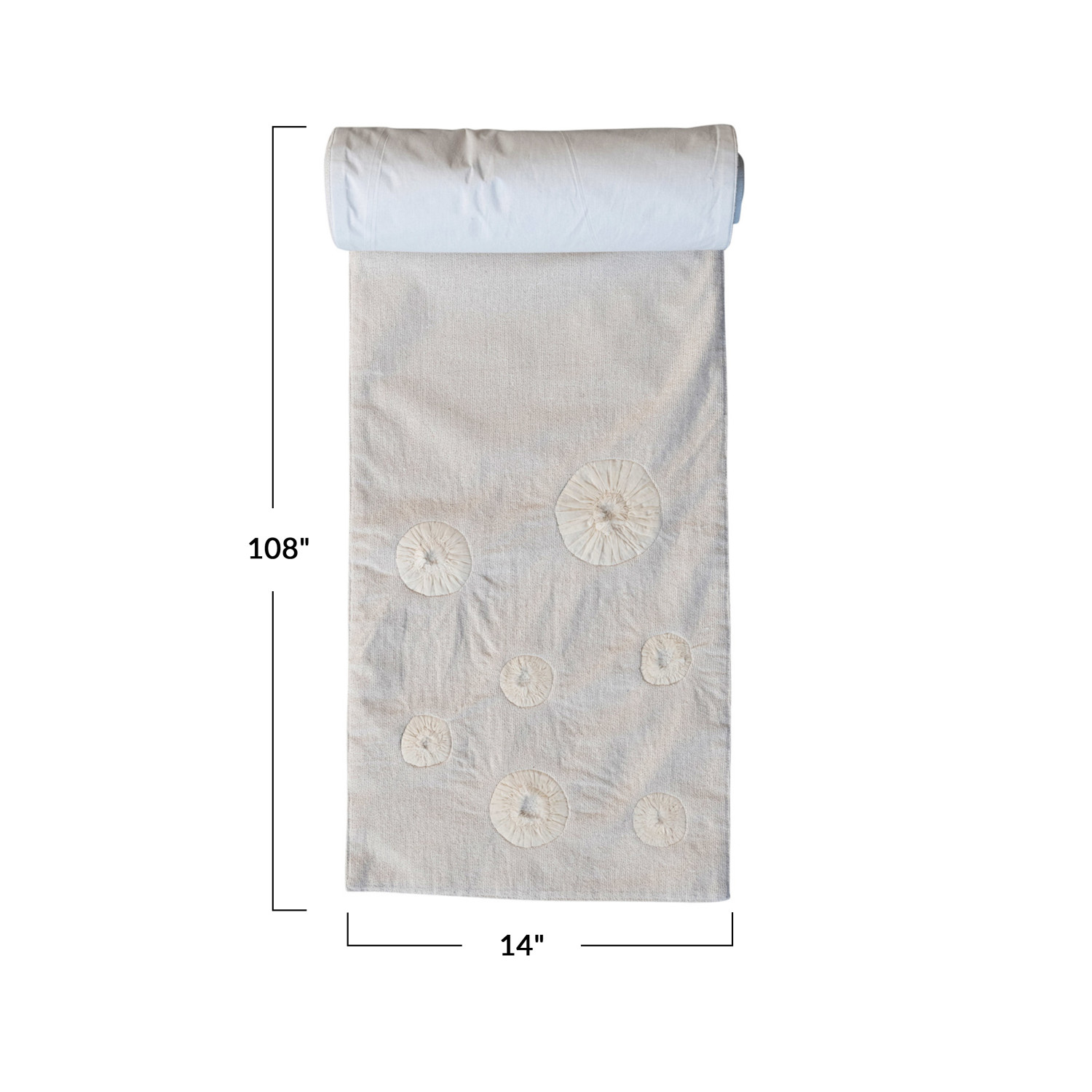 Catalog Name: 108"L x 14"W Handmade Woven Cotton & Linen Table Runner w/ Applique, Natural