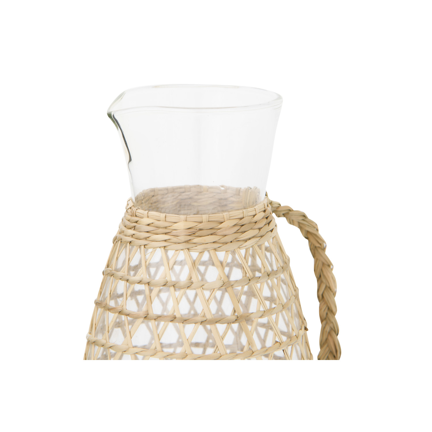 Whether having guests or enjoying family time around the table, use this clear glass pitcher for quick drink refills. It is beautiful with a seagrass weave cover and can be placed on the table along with other food items. When a glass is empty, there is no need to leave the conversation for refills. Just reach for this amazing and convenient pitcher.