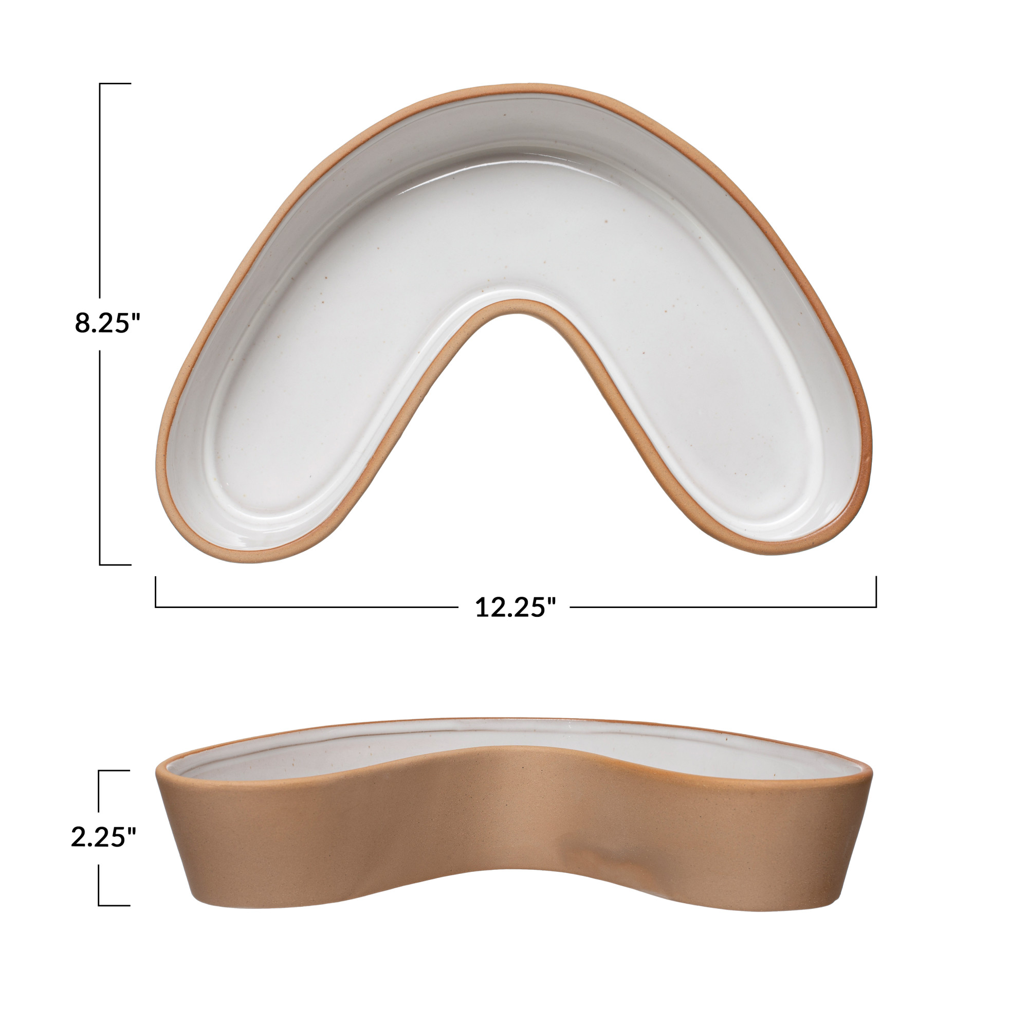Catalog Name: 12-1/4"L x 8-1/4"W x 2-1/4"H Stoneware U-Shaped Dish, White & Terra-cotta Color