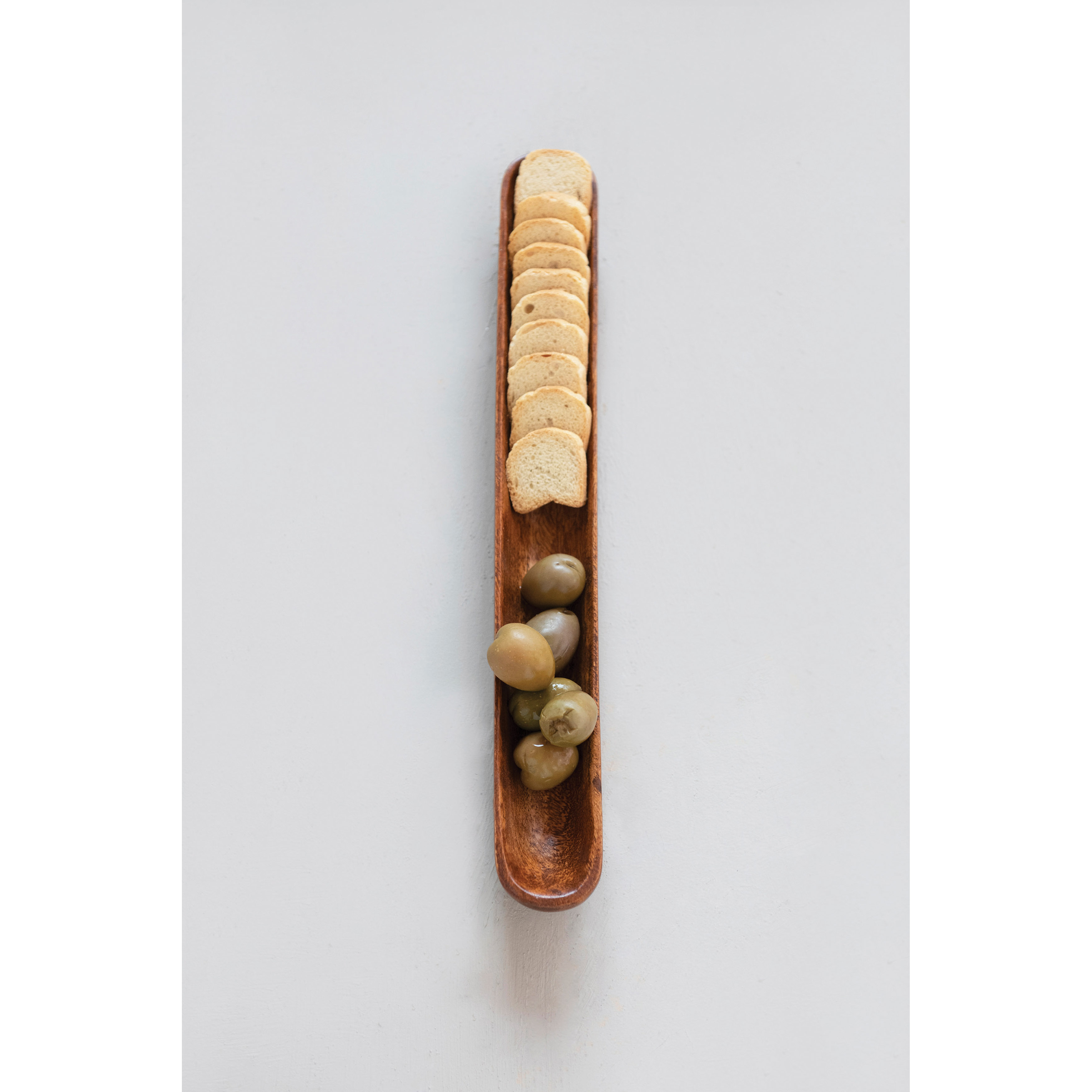 Catalog Name: 16"L x 2"W x 2"H Acacia Wood Olive Boat, Natural