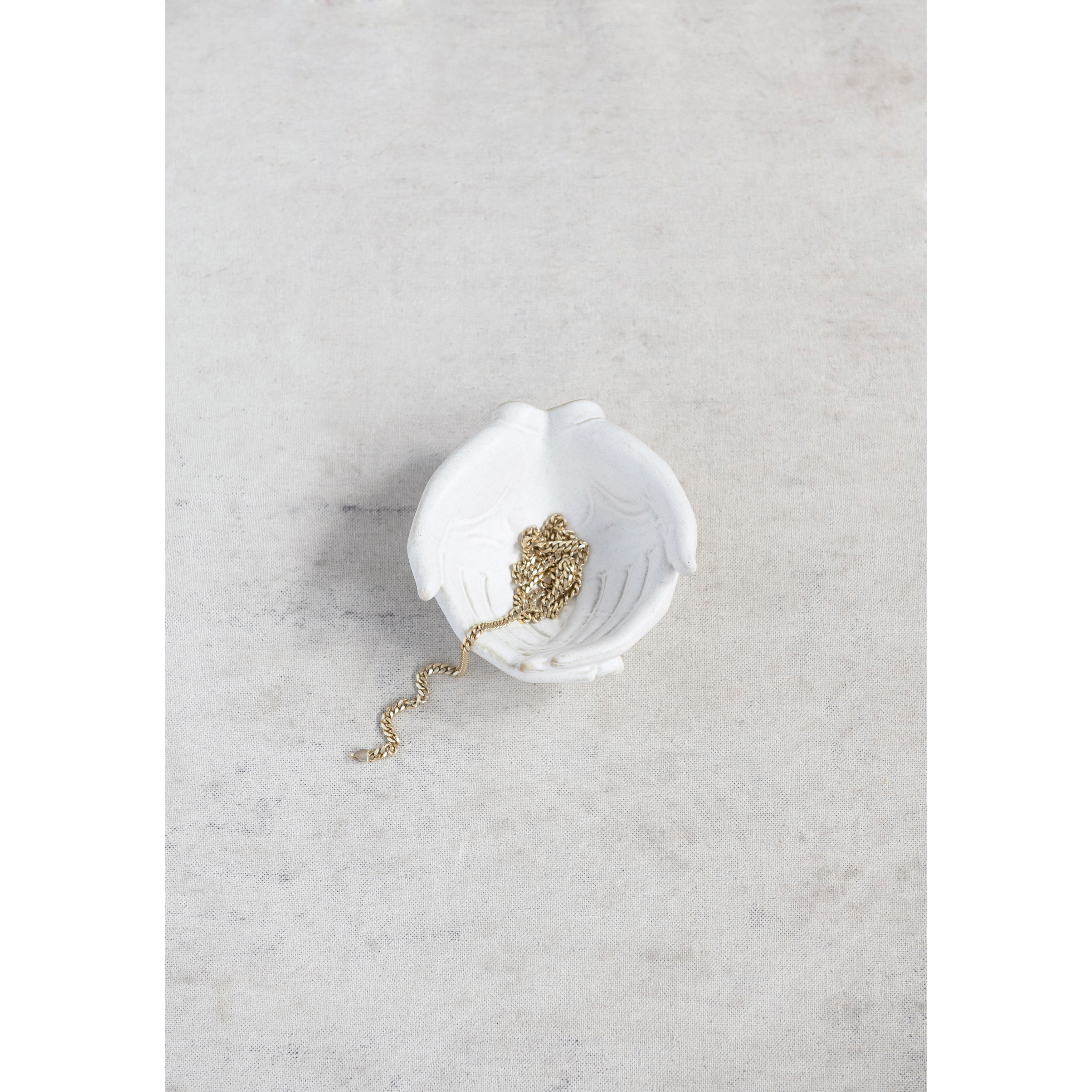 Catalog Name: 5"L x 4-1/2"W x 2-1/4"H Stoneware Hands Bowl, Reactive Glaze, White (Each One Will Vary)