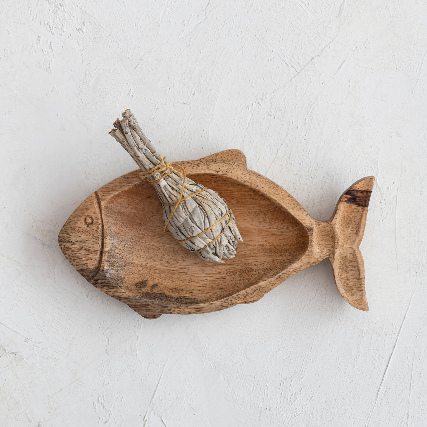 Catalog Name: 8"L x 4-1/2"W Hand-Carved Mango Wood Fish Shaped Dish, Natural (Each One Will Vary)