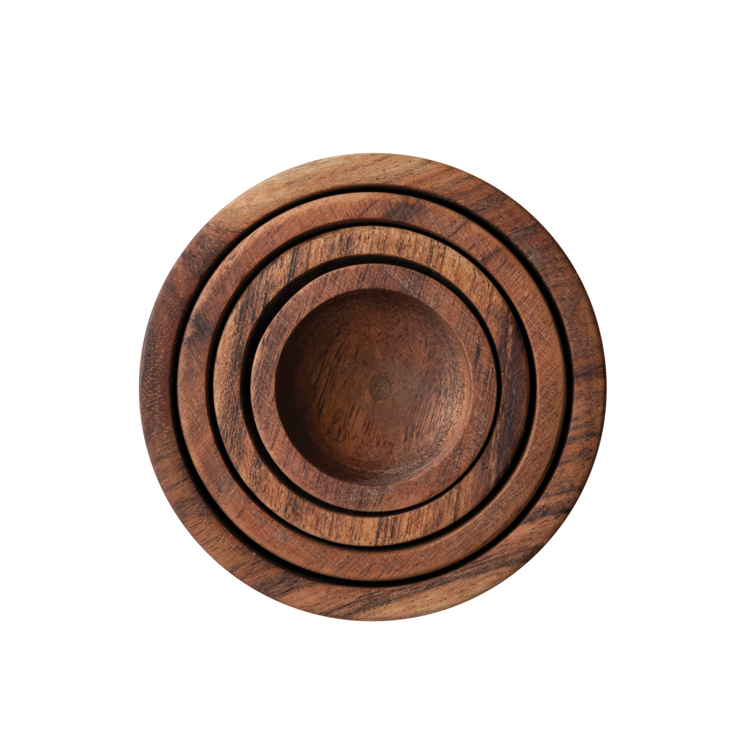 Catalog Name: 4" Round, 3-1/2" Round, 2-1/2" Round & 2" Round Acacia Wood Nesting Bowls, Natural, Set of 4