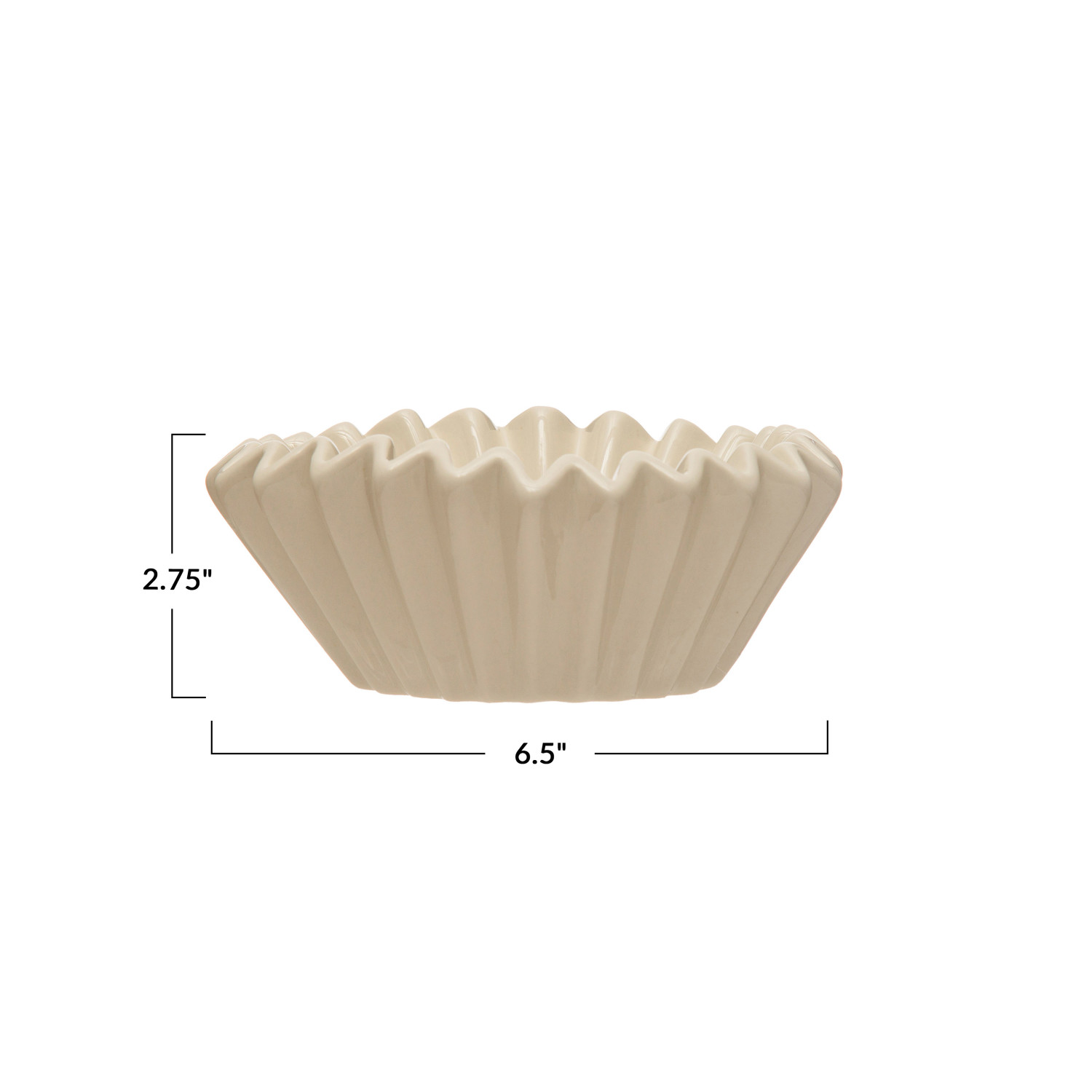 Our thoughtfully crafted collection of serve ware showcases an expansive selection of natural materials and artisanal silhouettes that are all intentionally designed for the modern host. Elevate gatherings of friends and family with an offering of stylishly versatile pieces including serving bowls, pitchers, platters, crocks, ladles, salt and pepper shakers, pinch pots, tiered trays, creamers, appetizer boards, serving trays, so much more. Choose from a wide array of materials from marble to wood, and styles from rustic and modern to farmhouse and glam. Curate a dazzlingly elegant display for a dinner party, or simply add a touch of style to daily rituals with a piece that is sure to impress. This cottage-inspired stoneware bowl features a fluted silhouette and zig zag edge. This piece is food safe. Dishwasher safe. Made from stoneware.