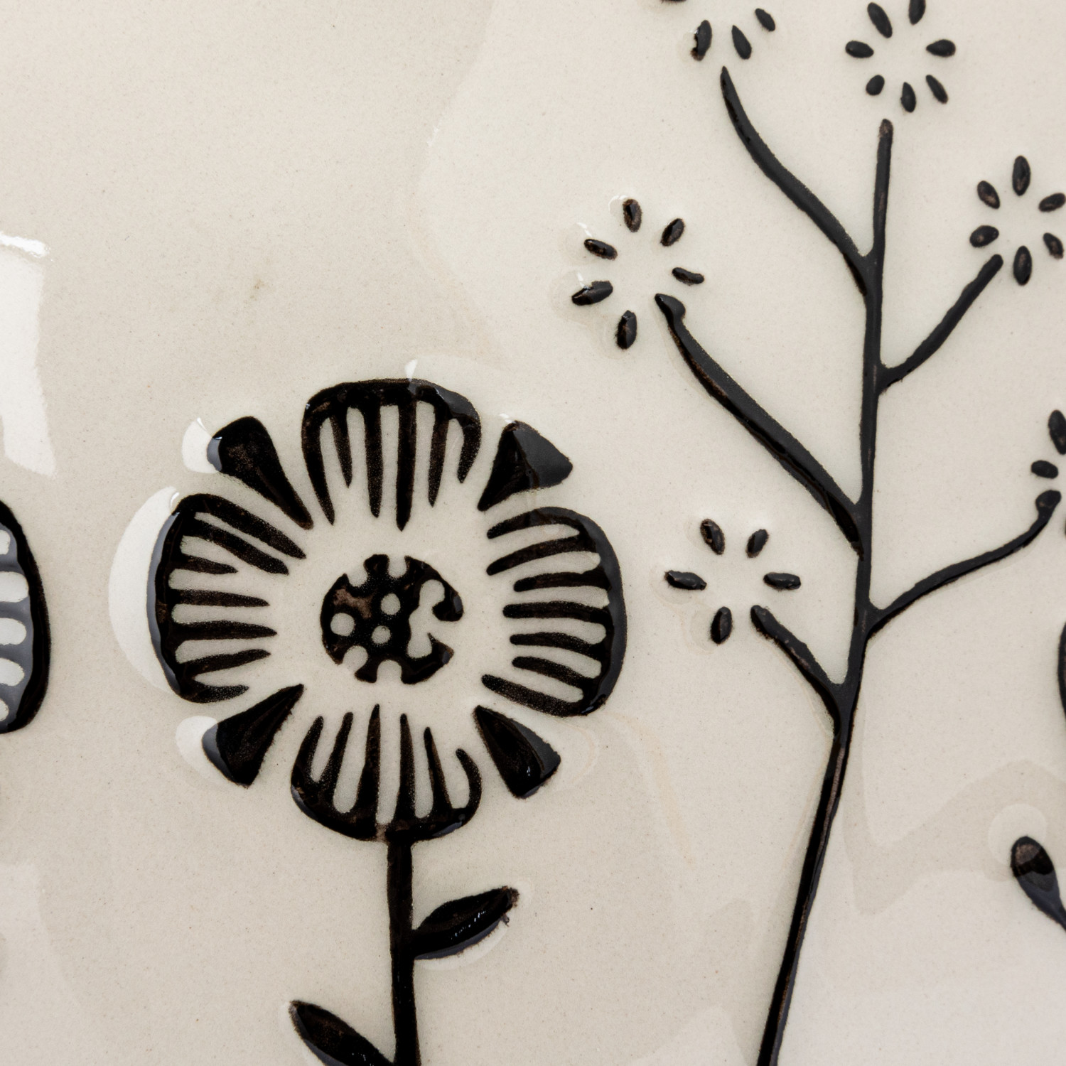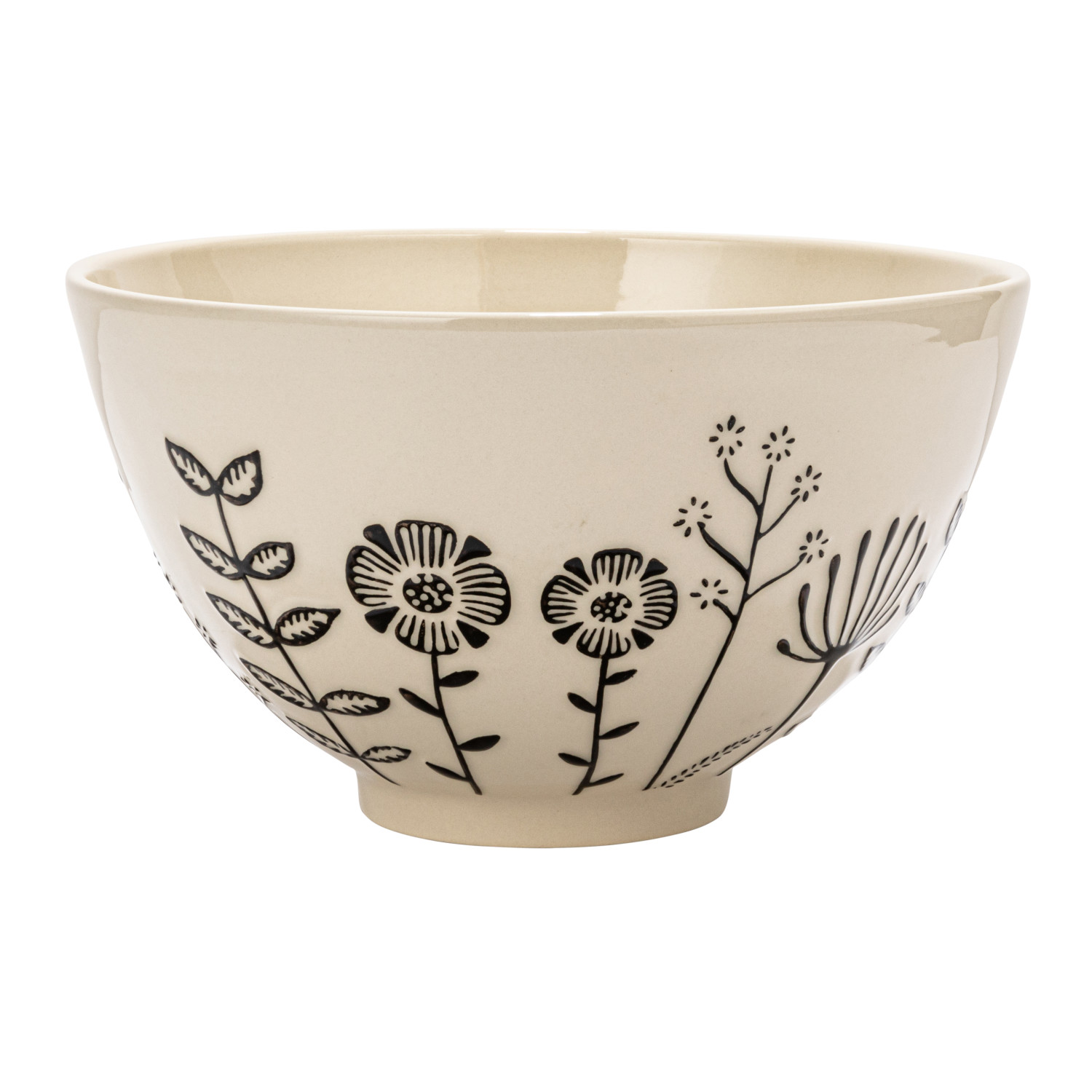 Catalog Name: 12-1/2" Round x 7"H Hand-Painted Stoneware Serving/Mixing Bowl w/ Embossed Flowers, Cream Color & Black