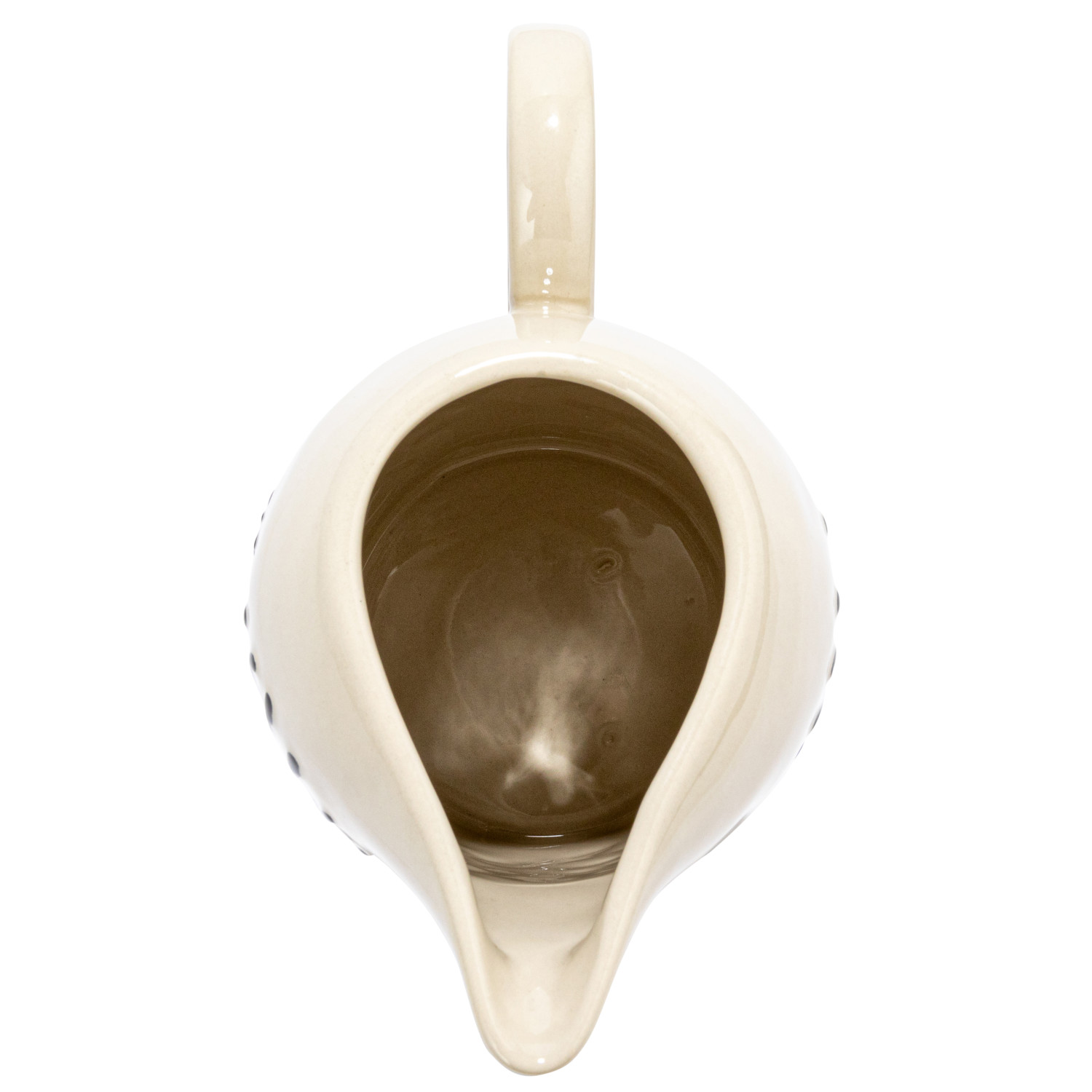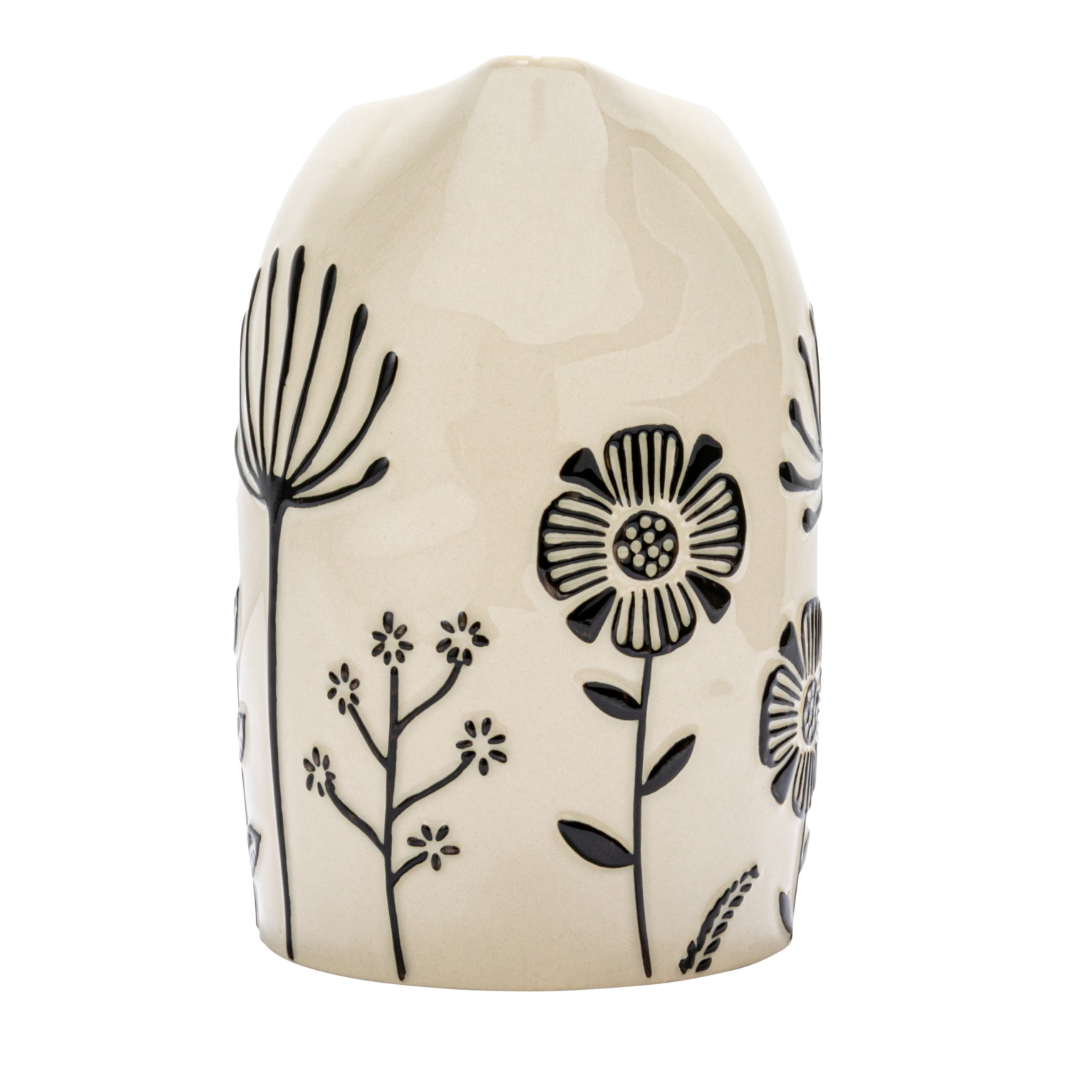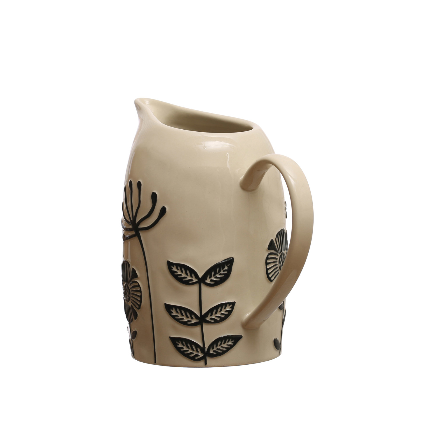 Catalog Name: 8-3/4"L x 5"W x 8-1/4"H 62 oz. Hand-Painted Stoneware Pitcher w/ Embossed Flowers, Cream Color & Black