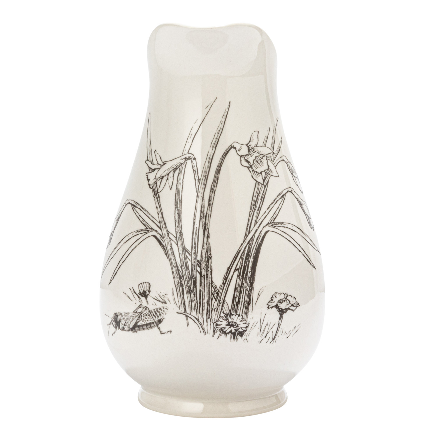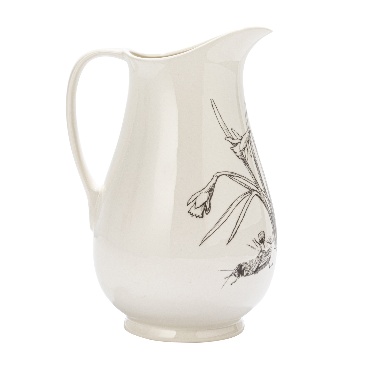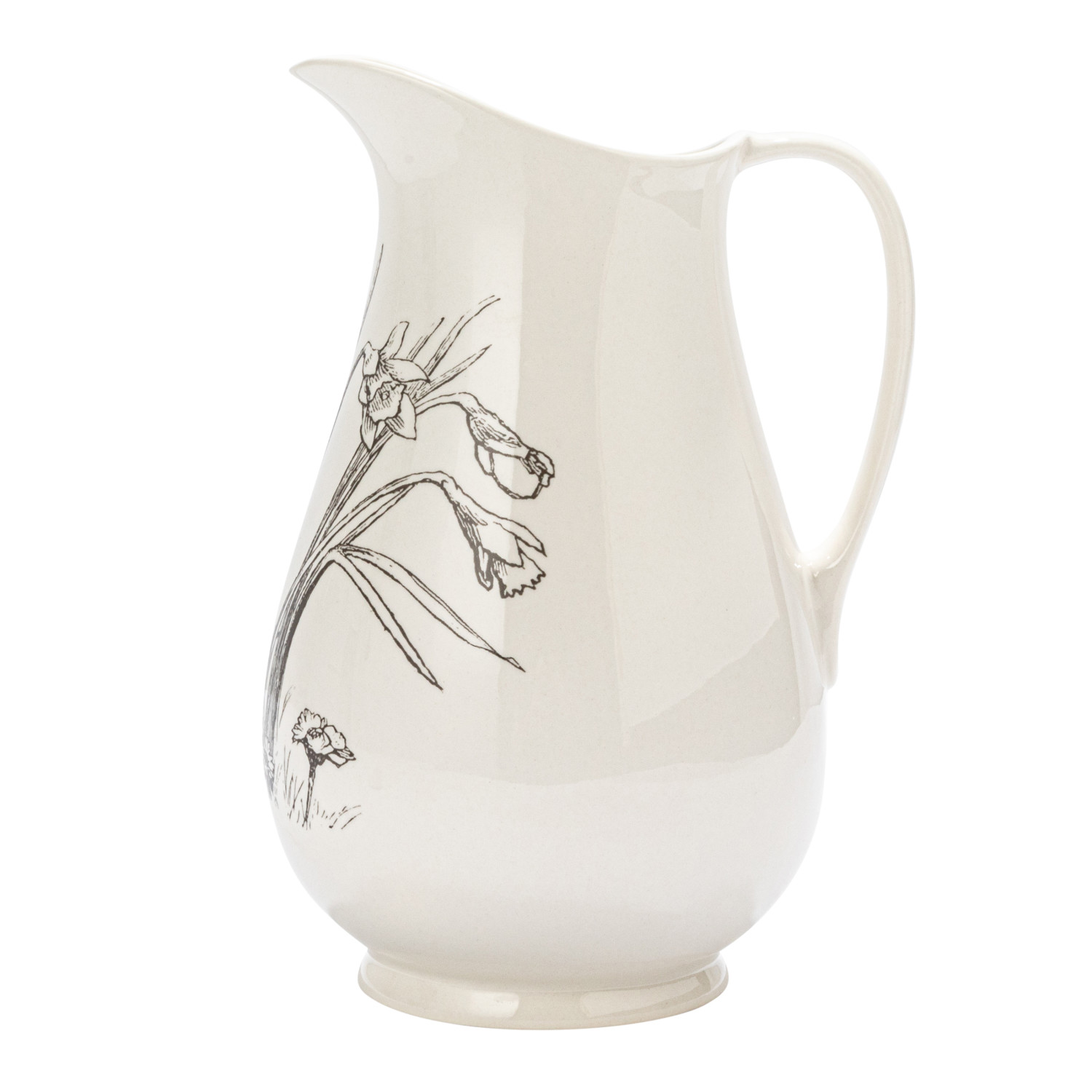 Catalog Name: 6-1/2"L x 6"W x 10"H 2 Quart Stoneware Pitcher w/ Flowers, White & Charcoal Color
