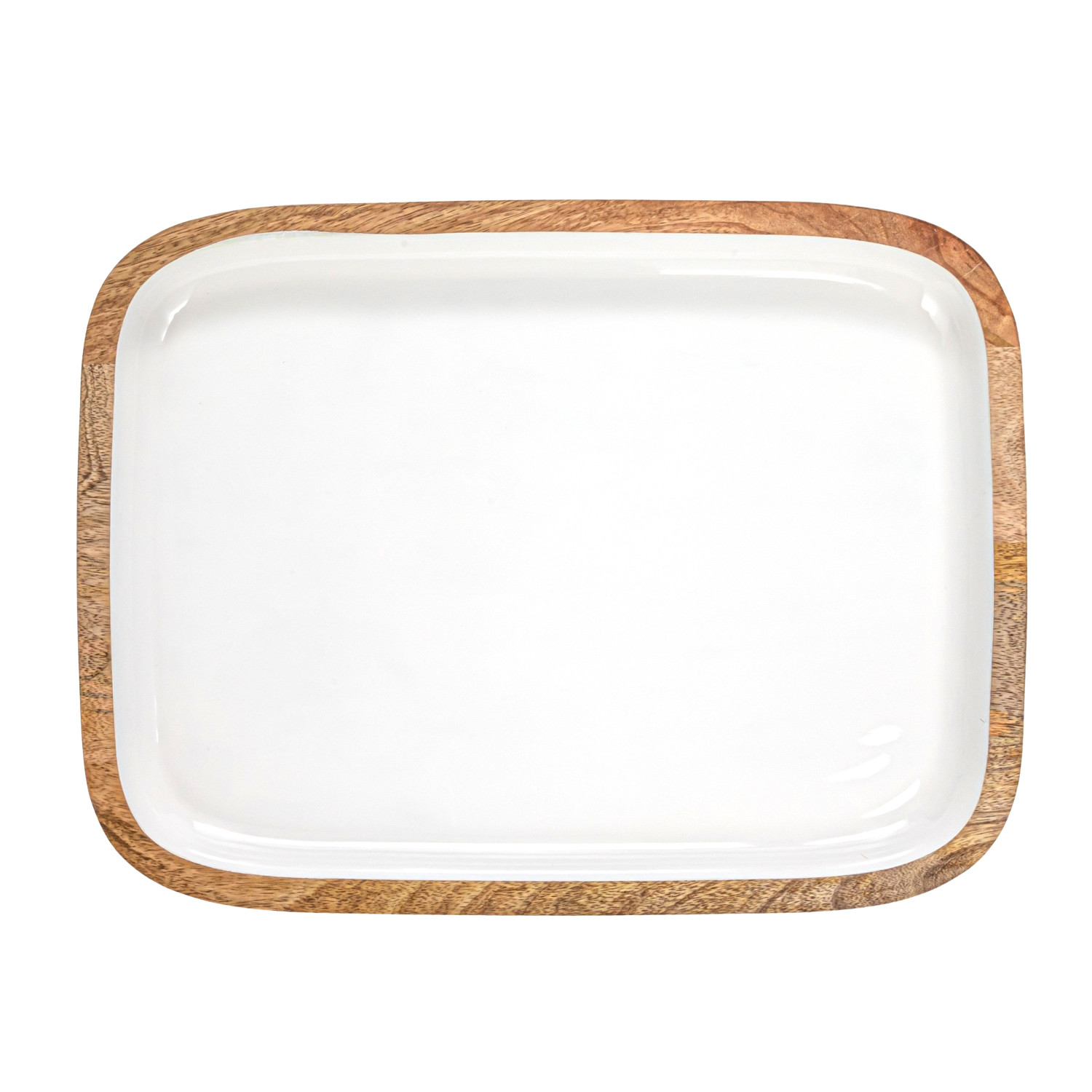 Catalog Name: 16"L x 12"W Enameled Mango Wood Tray, White & Natural