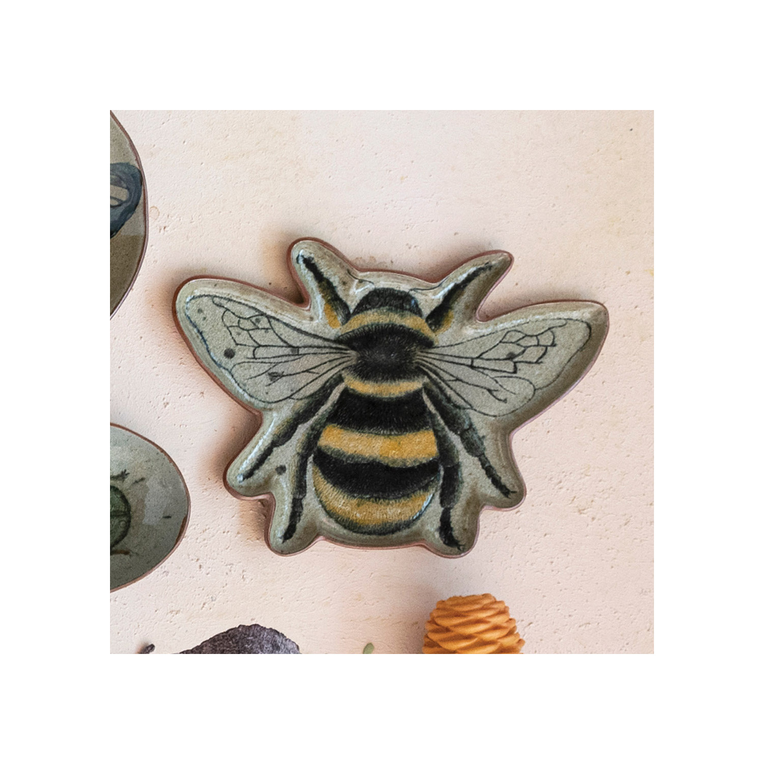 Catalog Name: 12-3/4"L x 10-1/4"W Stoneware Bee Shaped Plate, Reactive Crackle Glaze, Multi Color (Each One Will Vary)