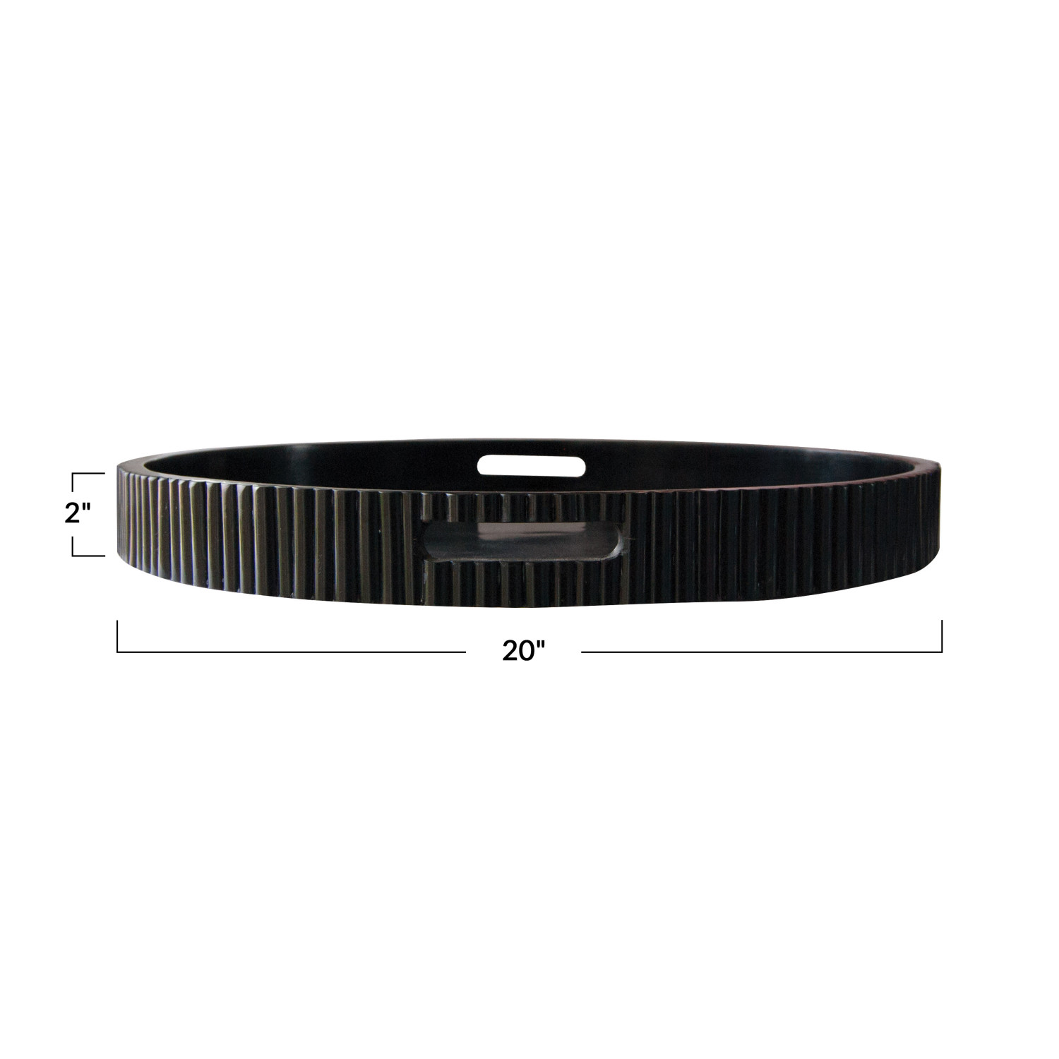 Catalog Name: 20" Round x 2"H Resin Ribbed Tray w/ Handles, Black