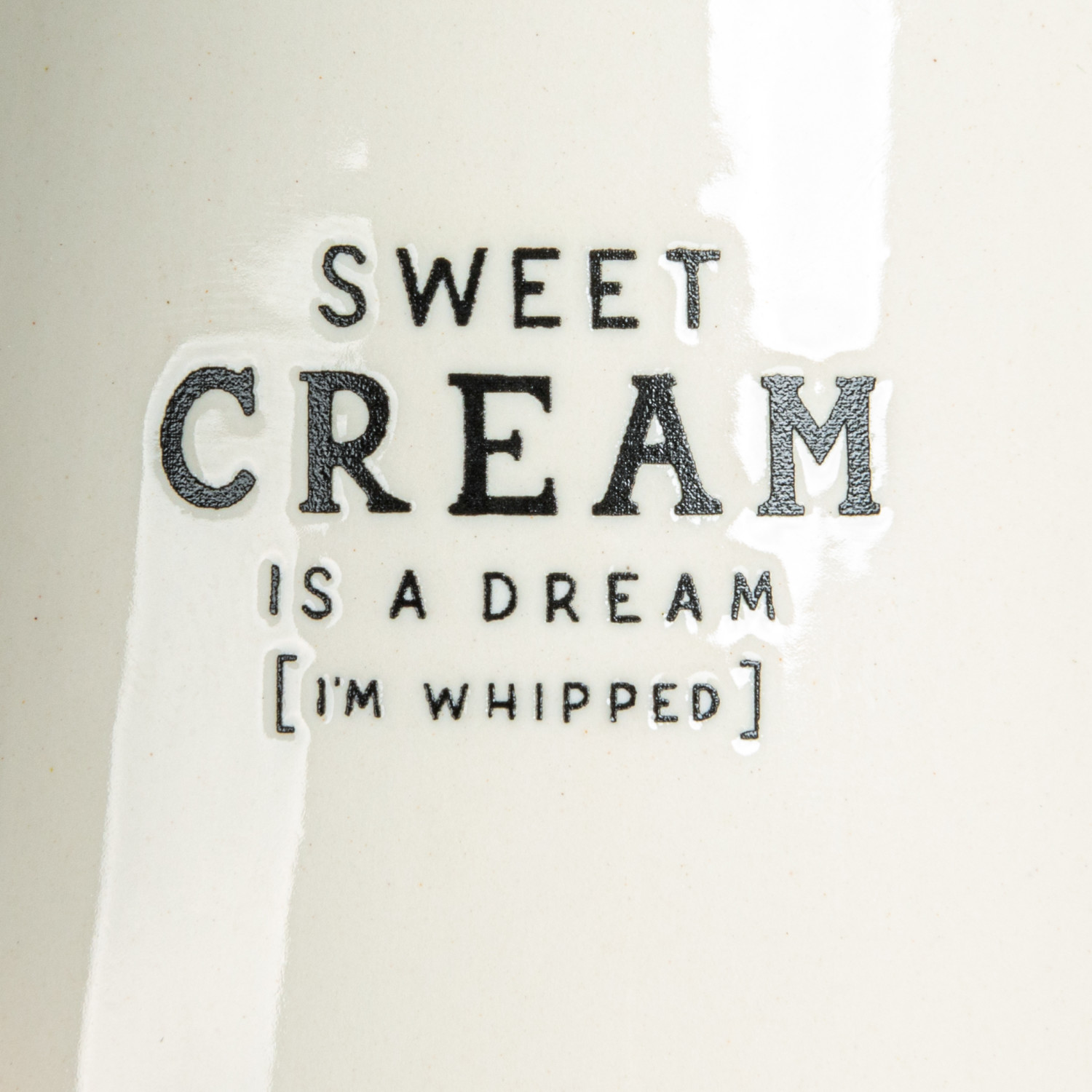 Catalog Name: 5-1/4"L x 3-3/4"W x 3-1/2"H 12 oz. Stoneware Creamer & 3-1/2" Round x 4-1/4"H 12 oz. Sugar Pot w/ Wax Relief Saying & Bamboo Spoon, White & Black, Set of 3 ©