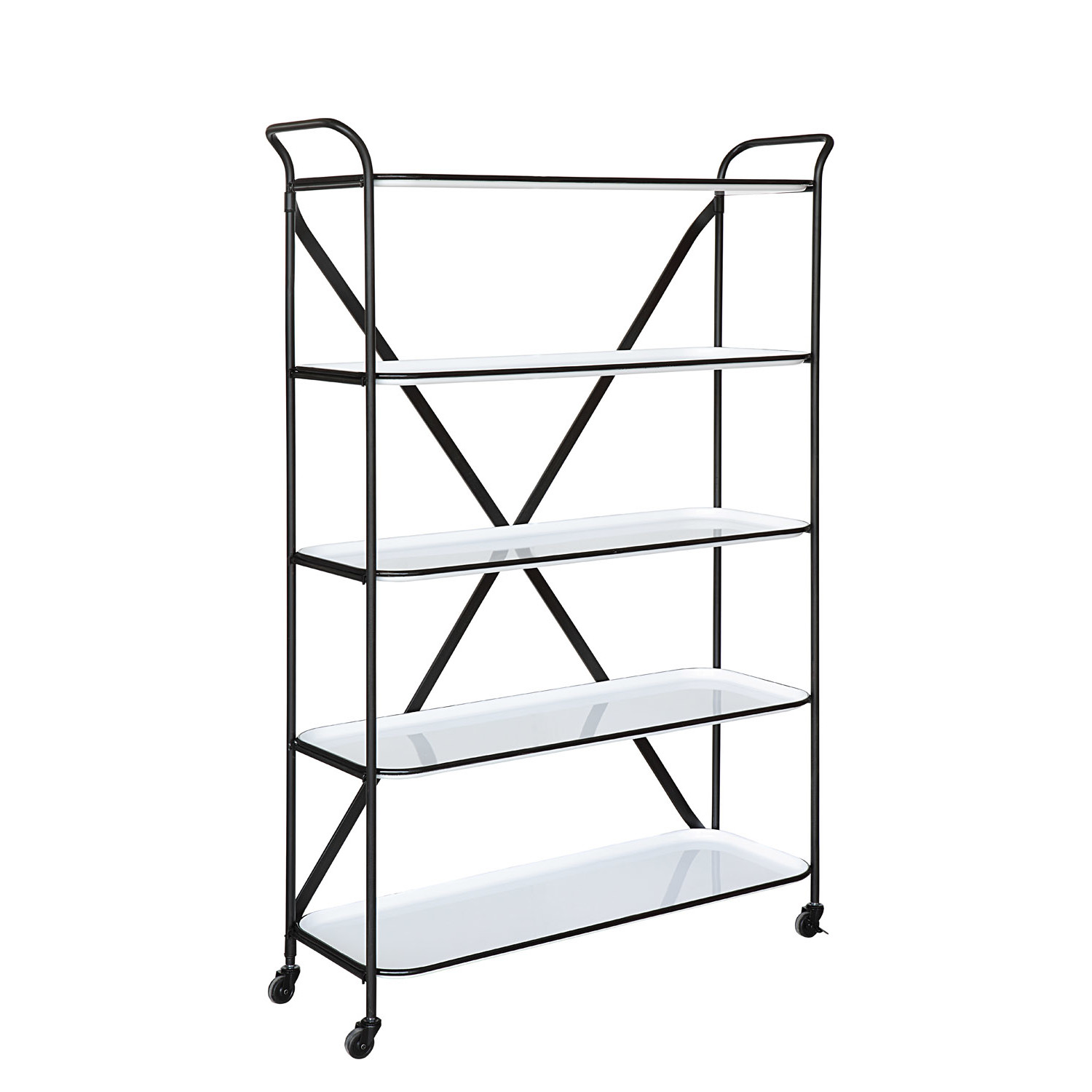 Catalog Name: 45-3/4"W x 15-3/4"D x 66"H Enameled Metal 5-Tier Shelf, White & Black, KD, Truck Ship