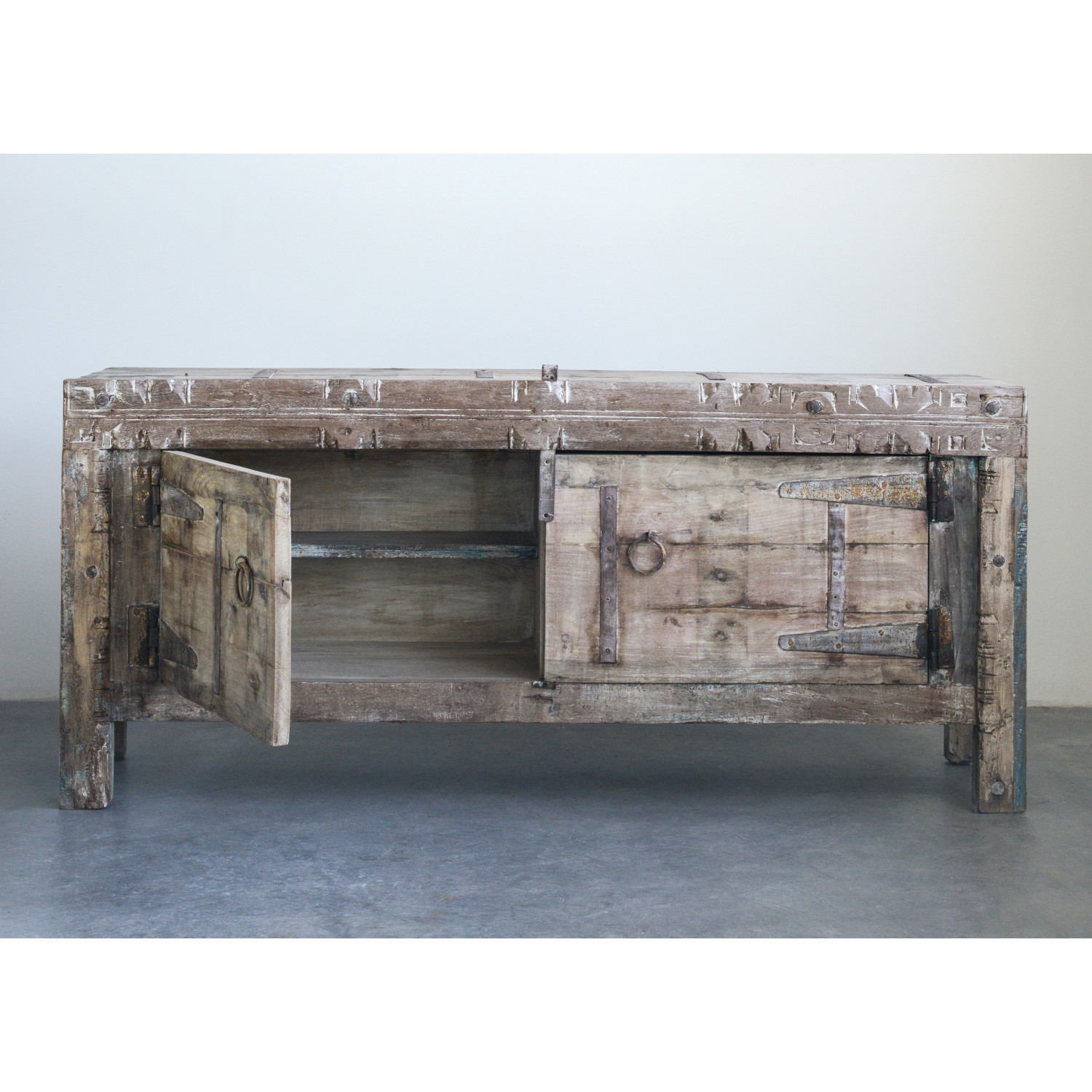 Catalog Name: 63-1/2"W x 22"D x 30"H Reclaimed Wood & Metal Console w/ 2 Doors & 1 Shelf, Truck Ship (Each One Will Vary)