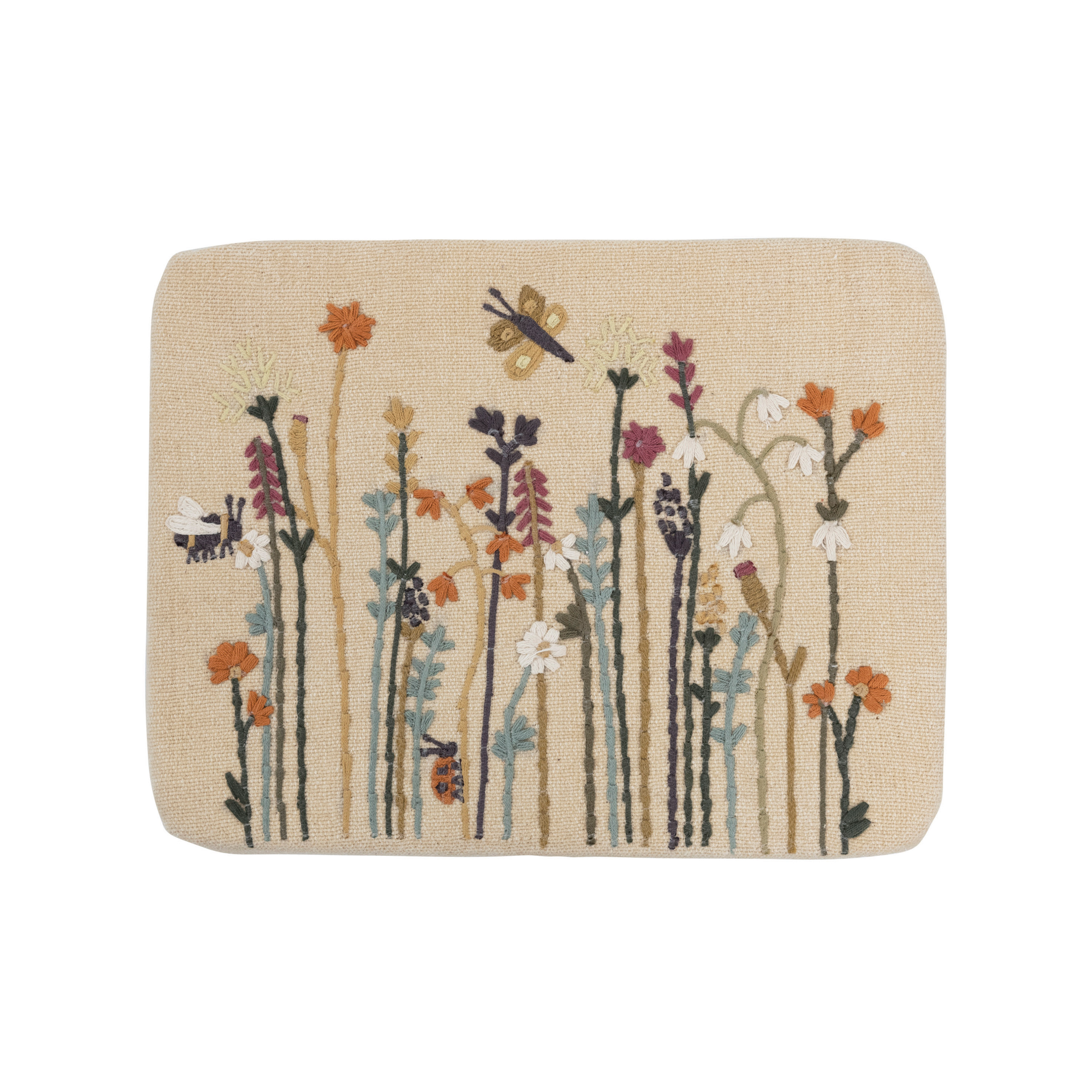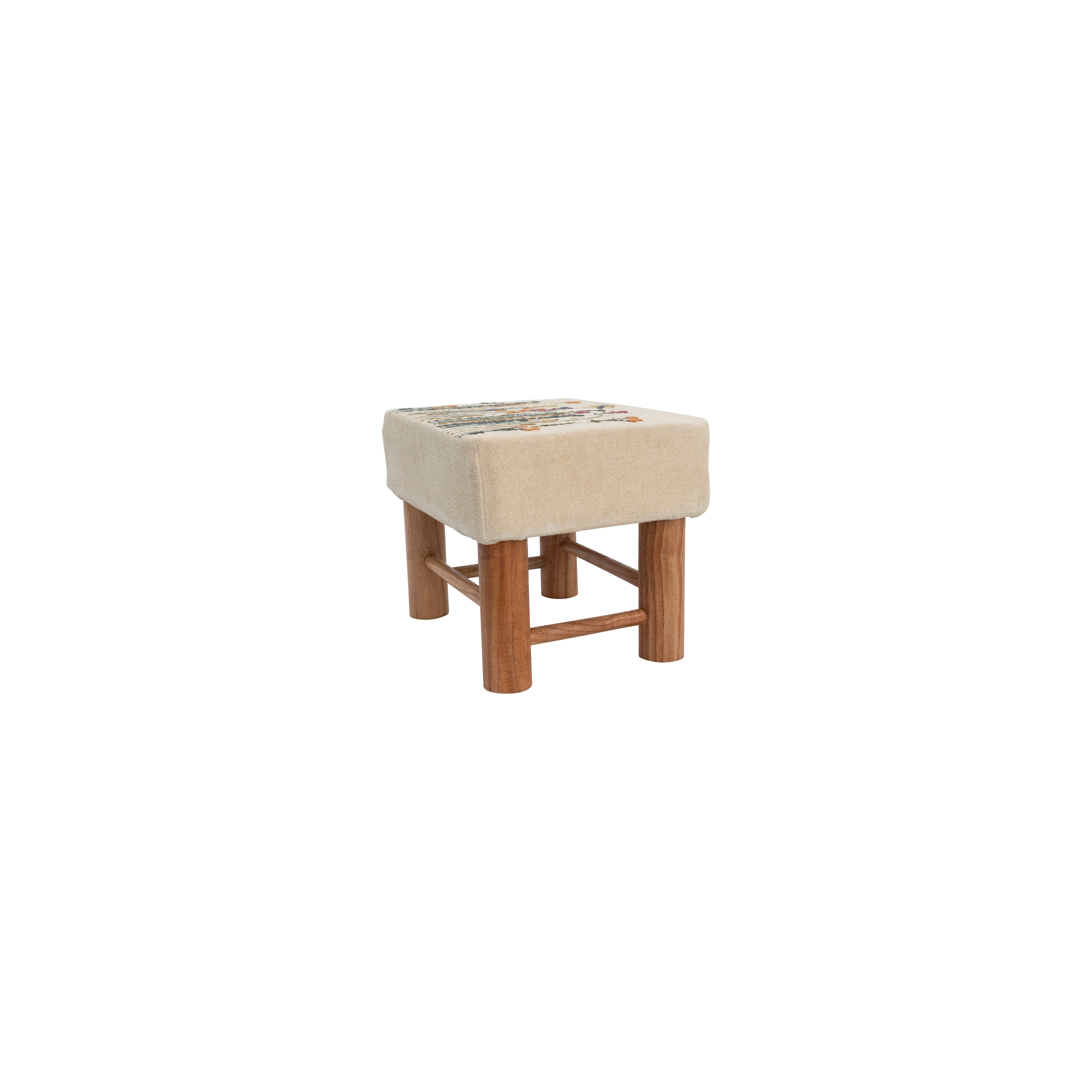 Catalog Name: 16"W x 13"D x 12"H Cotton Upholstered Stool w/ Floral Embroidery & Pine Wood Legs, Multi Color & Natural