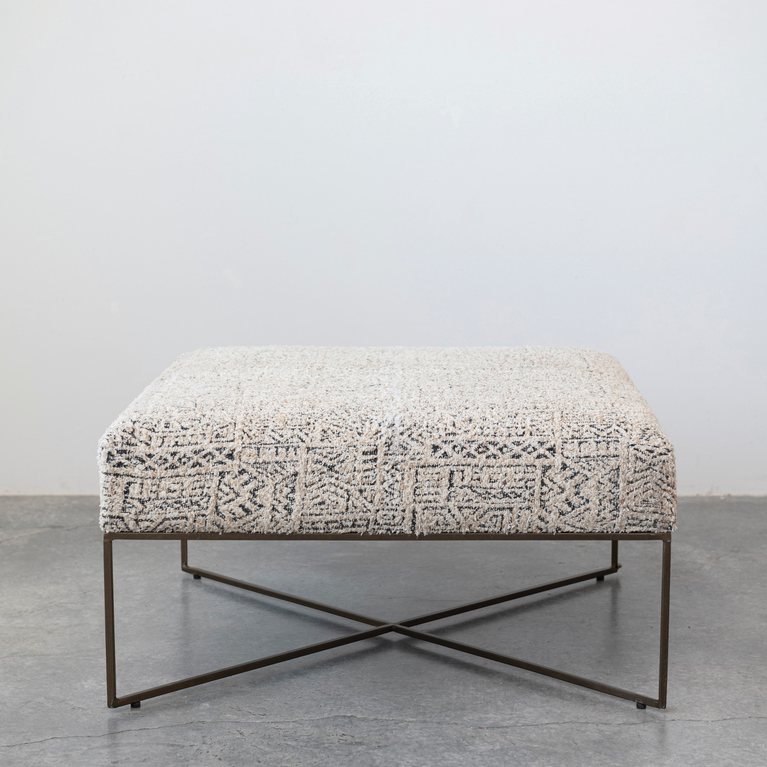 Enhance the space with this versatile and stylish ivory damask upholstered ottoman with a metal frame. It can serve multiple purposes and match any style, thanks to its square shape, metal frame, and damask upholstery. The ottoman is made of high-quality and sturdy materials: metal, cotton, jute, and polyester. These materials ensure stability and longevity. The ottoman is easy to assemble and comes with all the necessary hardware and instructions. The cover is made of cotton, jute, and polyester, which are durable and textured fabrics that add character and charm to any home. The cover has foam padding for extra comfort and for easy cleaning. Use this ottoman as a footrest, a seat, a coffee table, or an accent piece. It offers a soft and spacious surface and has a maximum weight capacity of 286 pounds, making it reliable and practical. Place it in the living room, bedroom, office, or den, this ivory damask upholstered ottoman with a metal frame will enhance any home with its coziness and elegance. Add a touch of elegance and comfort to the home with this ivory damask upholstered ottoman, featuring a square shape and a metal frame. This ottoman is perfect for traditional, vintage, or French style décor, as it adds a classic and refined look to any room. Use this ottoman as a footrest, a seat, a coffee table, or an accent piece, as it offers a soft and spacious surface. The ottoman is made of high-quality and sturdy materials, including metal, cotton, jute, and polyester, materials that ensure stability and longevity.