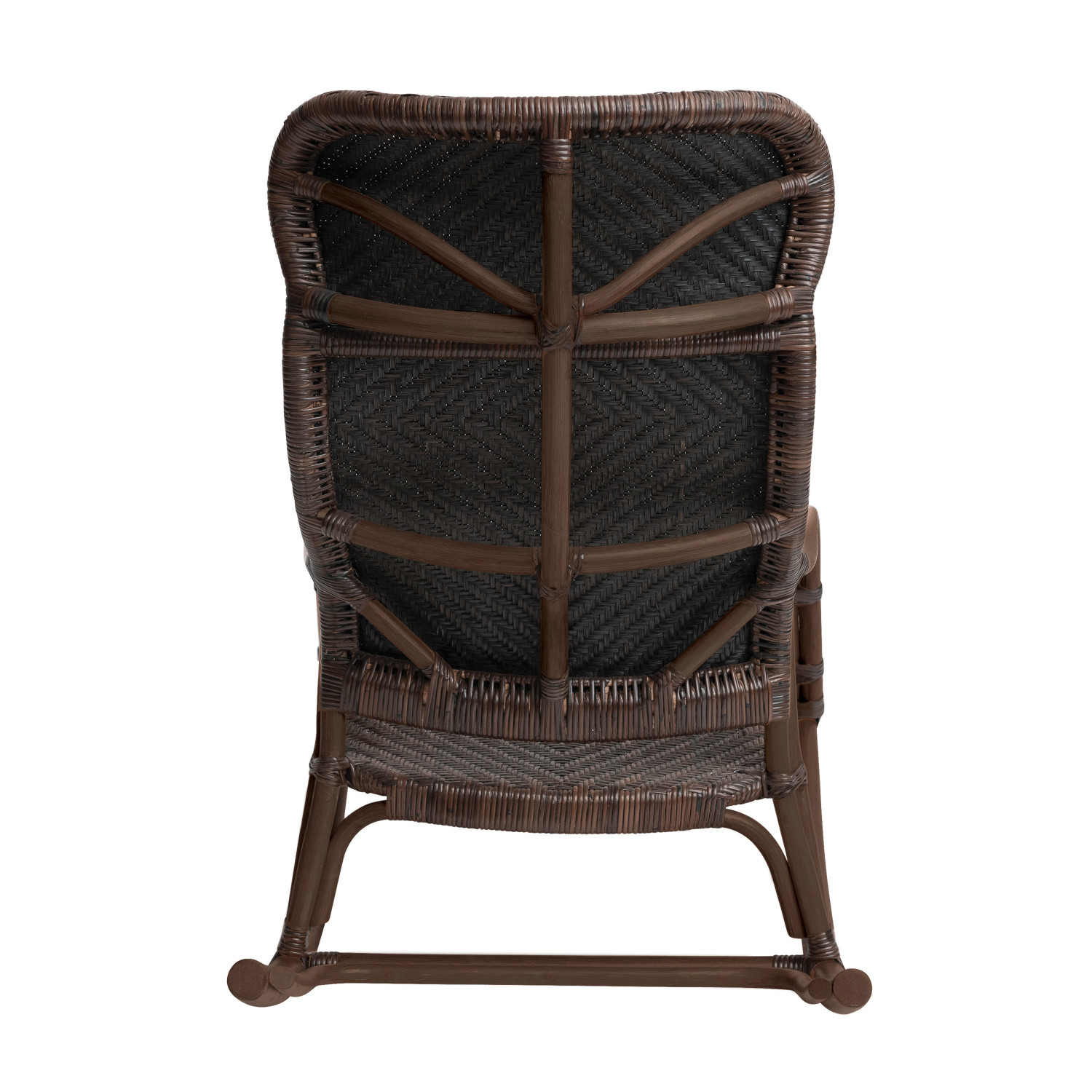 Catalog Name: 23-1/4"W x 45"D x 38"H Hand-Woven Rattan Rocking Chair, Walnut Finish, Truck Ship