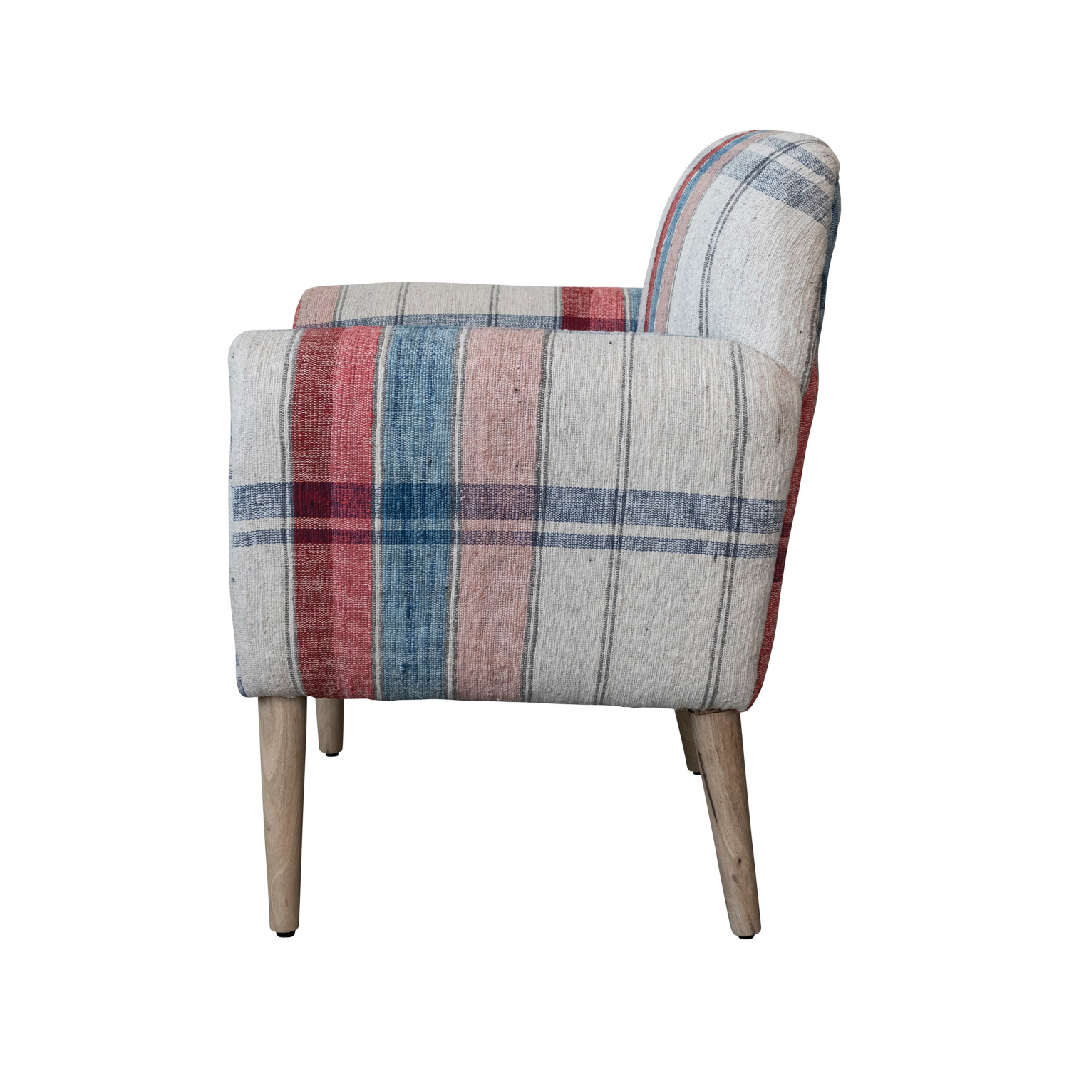 Catalog Name: 33"W x 28"D x 38"H Woven Cotton Upholstered Arm Chair w/ Mango Wood Legs & Nail Heads, Multi Color Plaid & Bleached, KD, Truck Ship