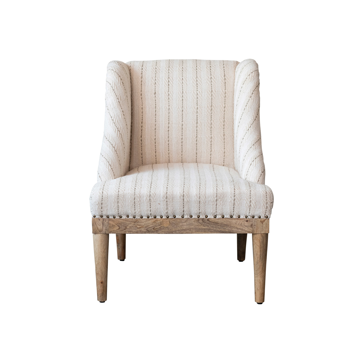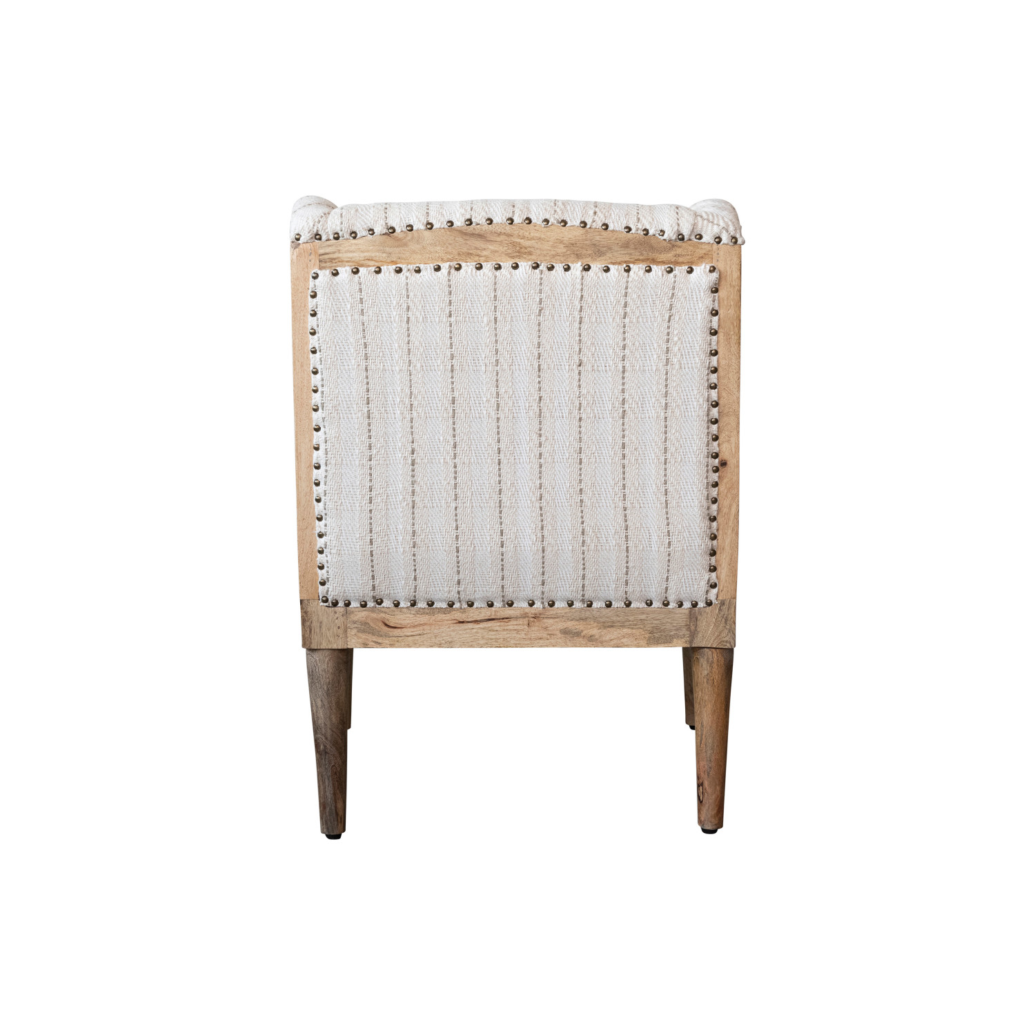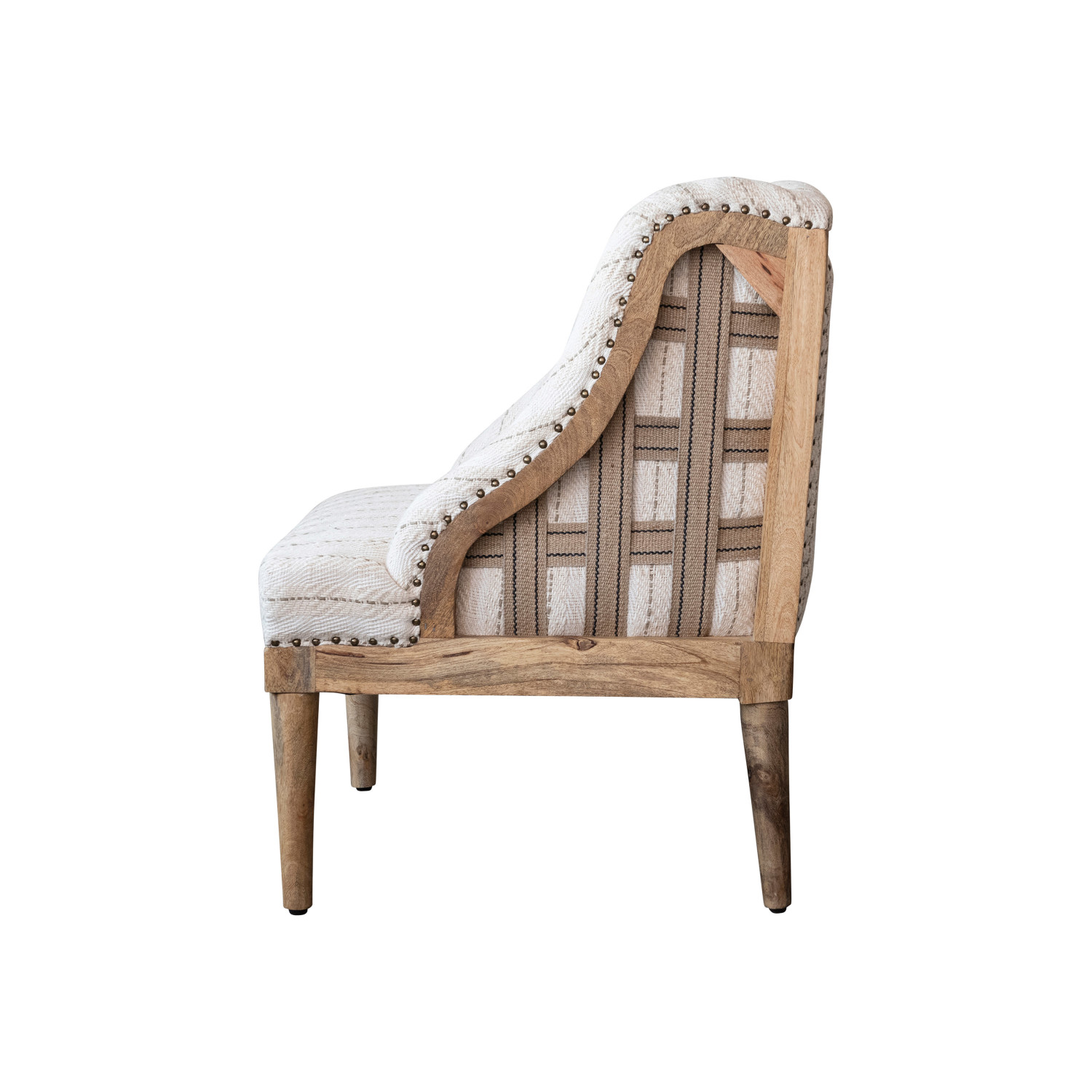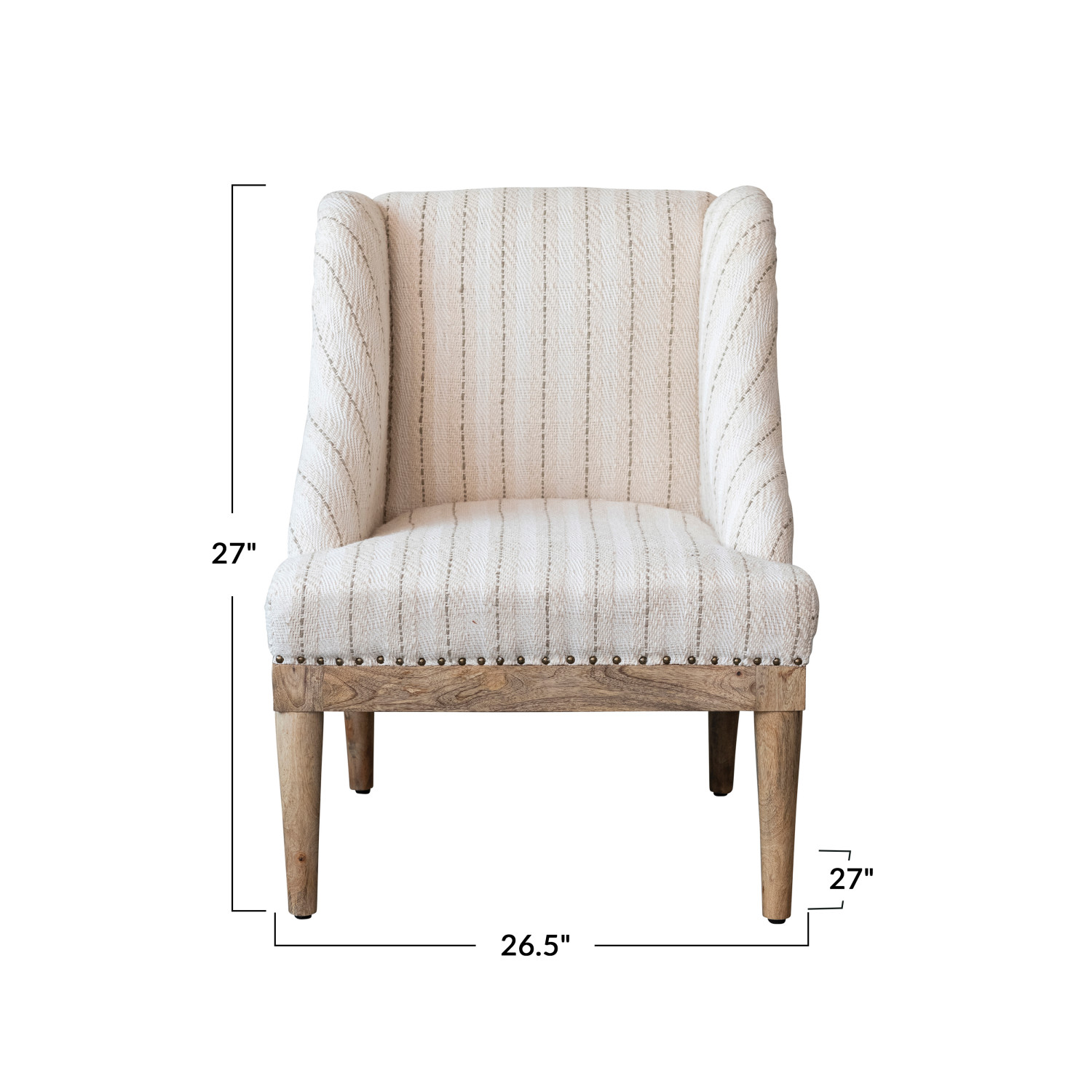 Catalog Name: 26-1/2"W x 27"D x 27"H Woven Cotton Upholstered Striped Chair w/ Mango Wood Legs, Exposed Strapping & Nail Heads, Cream Color & Natural, KD, Truck Ship