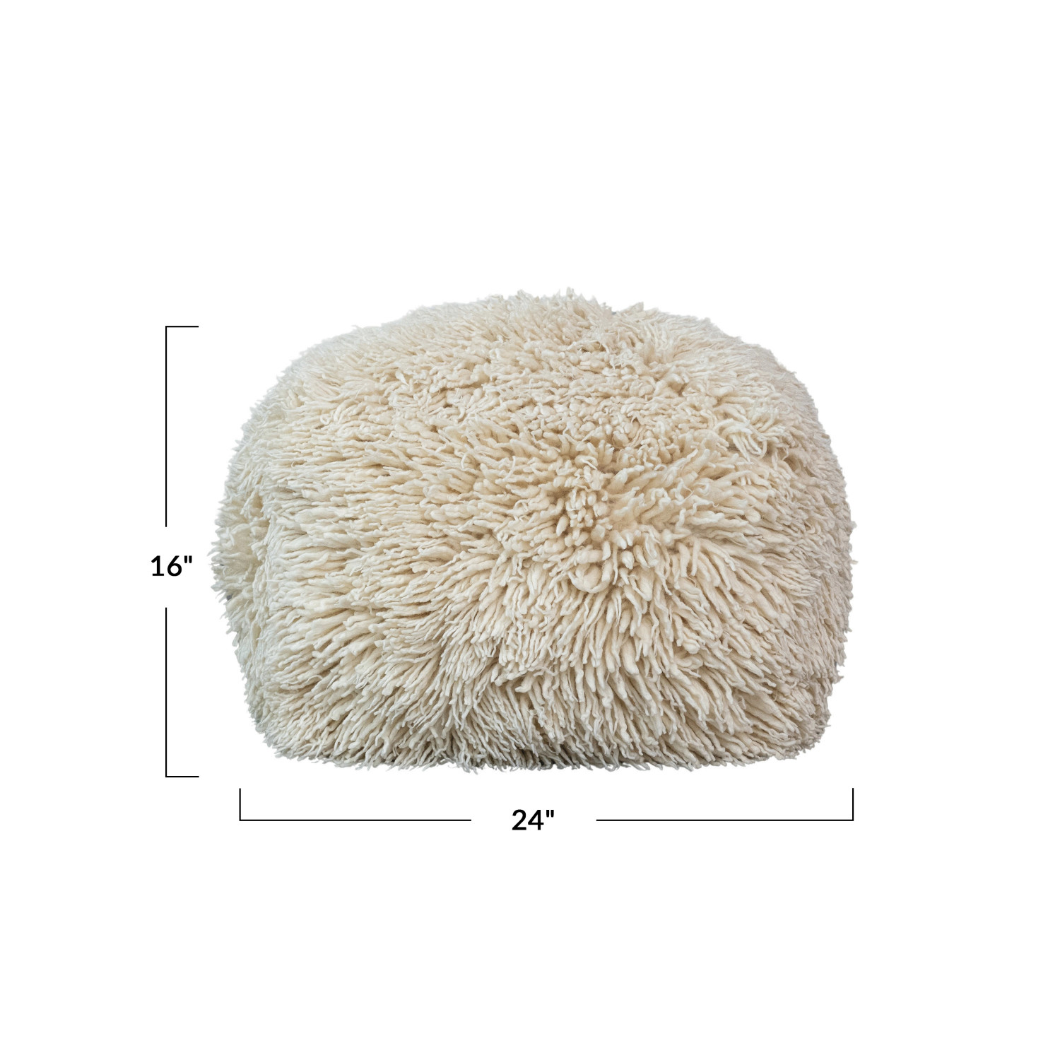 Catalog Name: 24" Square x 16"H Woven New Zealand Wool & Cotton Shag Pouf, Cream Color, Truck Ship