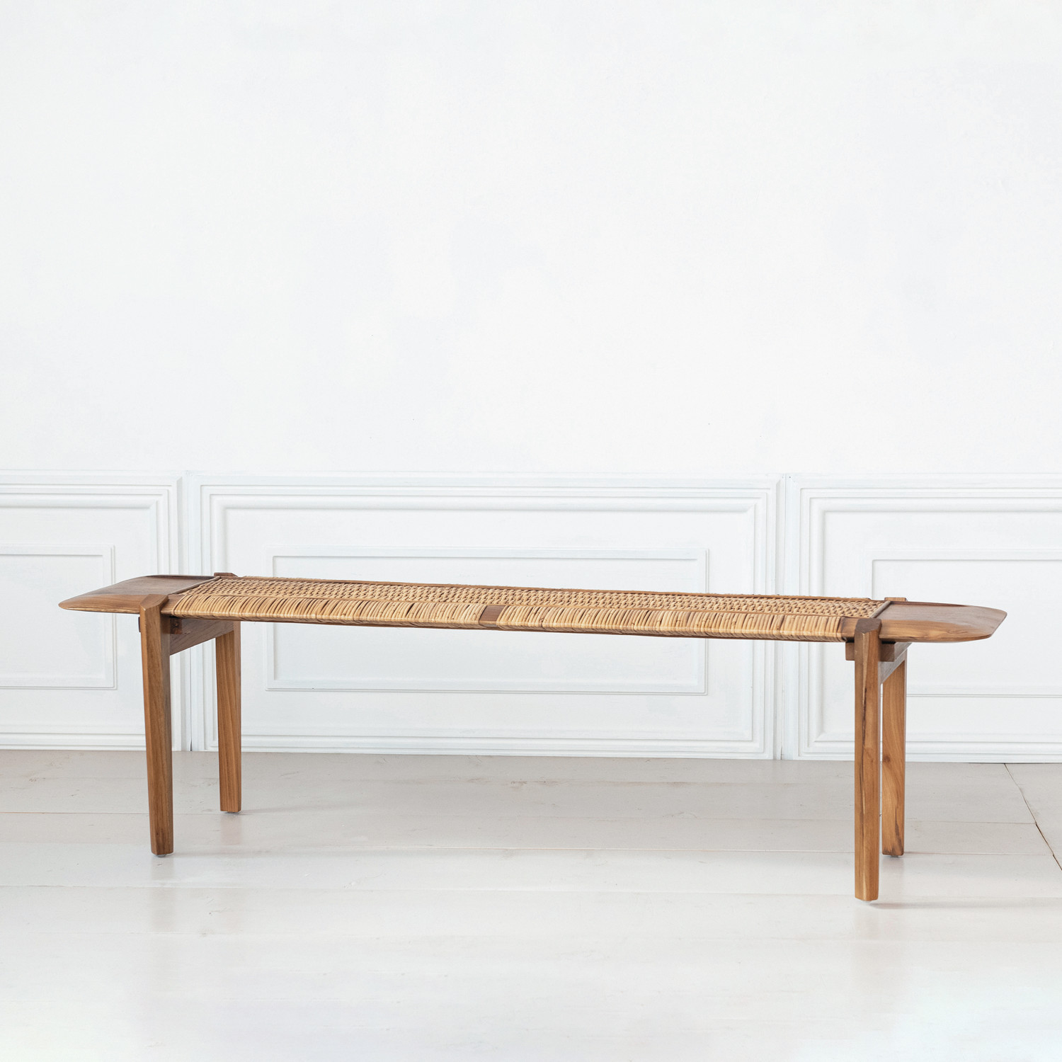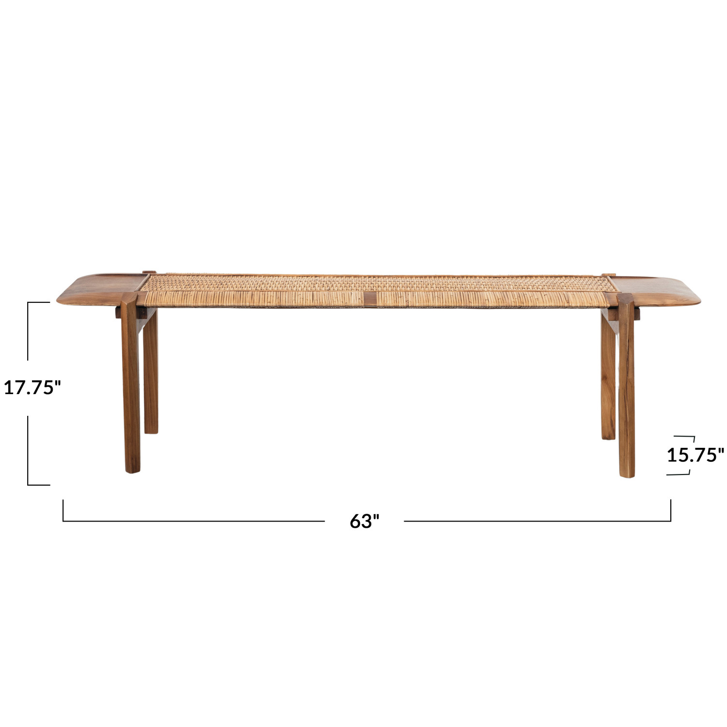 Catalog Name: 63"W x 15-3/4"D x 17-3/4"H Teakwood & Rattan Bench w/ Two-Tone Joinery, Natural, KD, Truck Ship