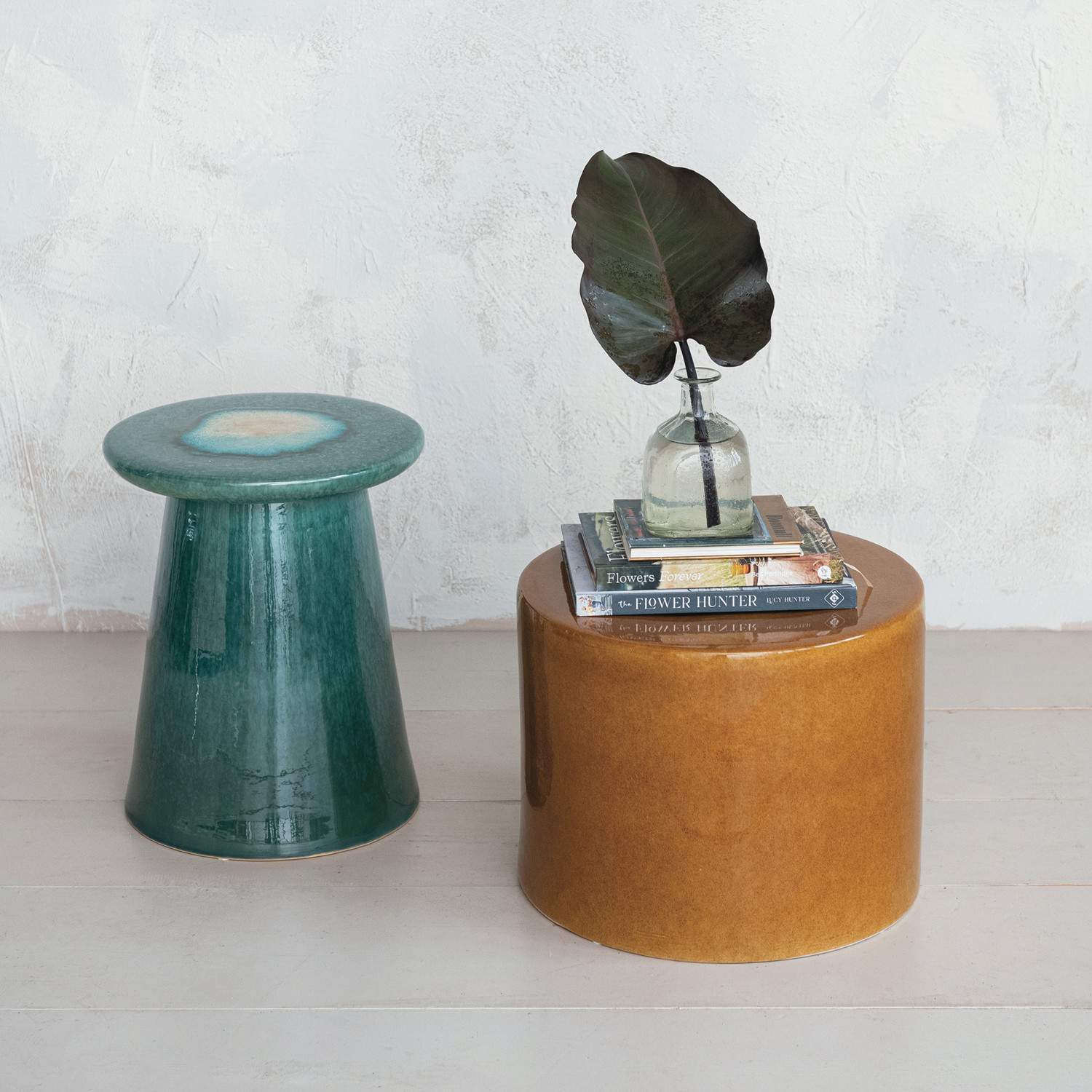 This Teal Stoneware Stool is not just a place to sit; it's a conversation starter. Each stool is finished with a reactive glaze, ensuring that no two are exactly alike, and shipped via truck to guarantee safe arrival. The round, robust design supports up to 200 pounds and fits perfectly in boho, Scandinavian, or eclectic decor settings. With a diameter of 13.75 inches and a height of 17.75 inches, it's the perfect size for versatile use throughout the home. Whether looking for additional seating or a splash of color, this stool delivers both style and function.