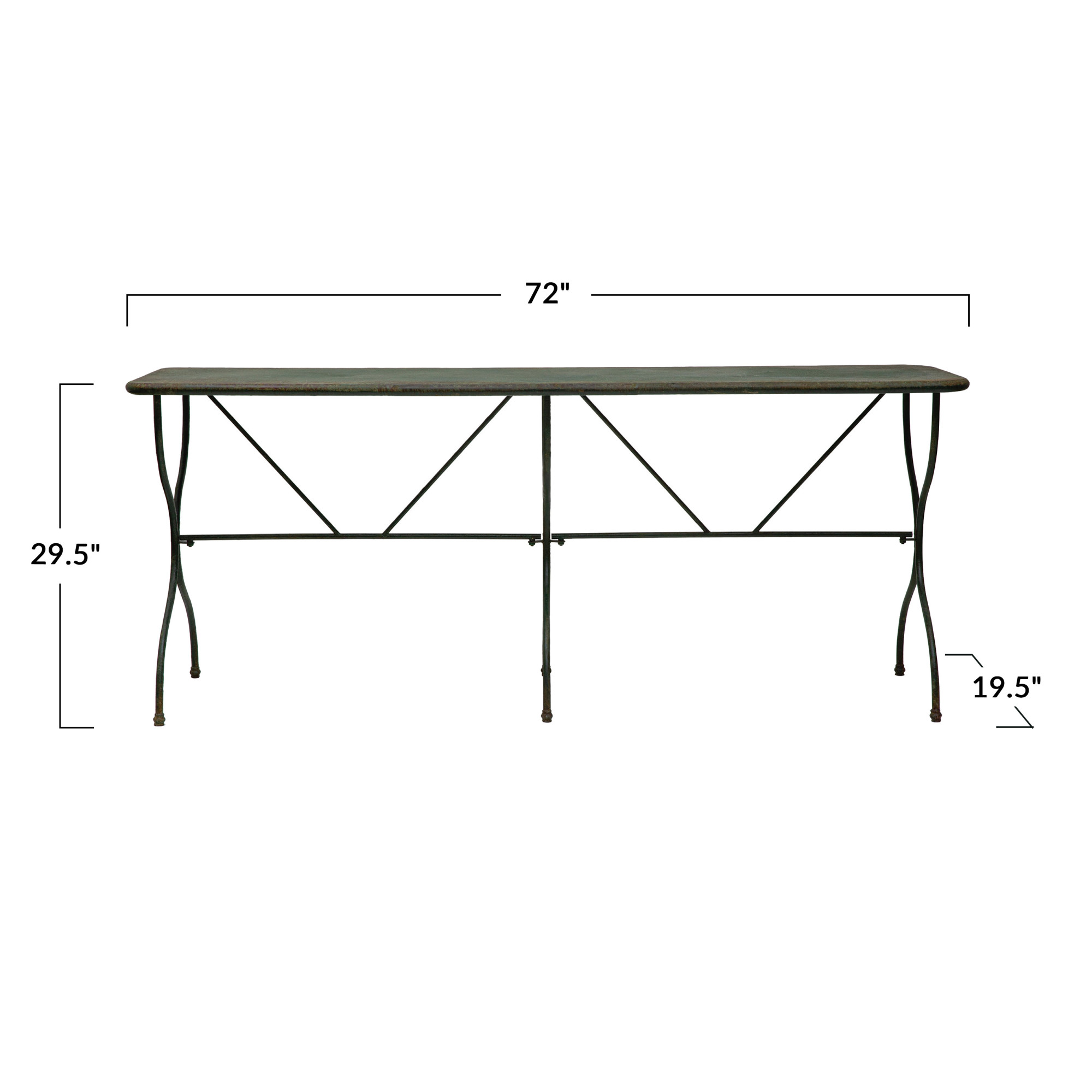 Catalog Name: 72"L x 19-1/2"W x 29-1/2"H Metal Table, Distressed Finish, Green, KD, Truck Ship