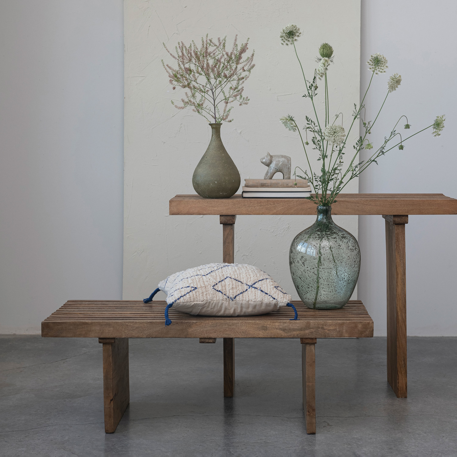 This mango wood slated coffee table adds warmth and character to any living room. It is made of solid mango wood, a durable and eco-friendly hardwood with a rich and varied color. The natural finish enhances the wood's texture and brings out its unique patterns and knots. The table has a simple and sturdy design. It can hold books, magazines, baskets, or blankets, keeping the living room tidy and cozy. The table's size and shape make it ideal for placing in front of a sofa or loveseat, creating a comfortable and inviting spot for relaxing or entertaining. This mango wood slatted coffee table complements any farmhouse, coastal, or bohemian style living room and adds some charm to the home. A rustic and charming coffee table that showcases the natural beauty of mango wood. Perfect for farmhouse, coastal, or bohemian style living rooms. Features a spacious slatted table for storing books, magazines, baskets, or blankets. Made of solid mango wood with a natural finish that highlights the wood grain and knots.