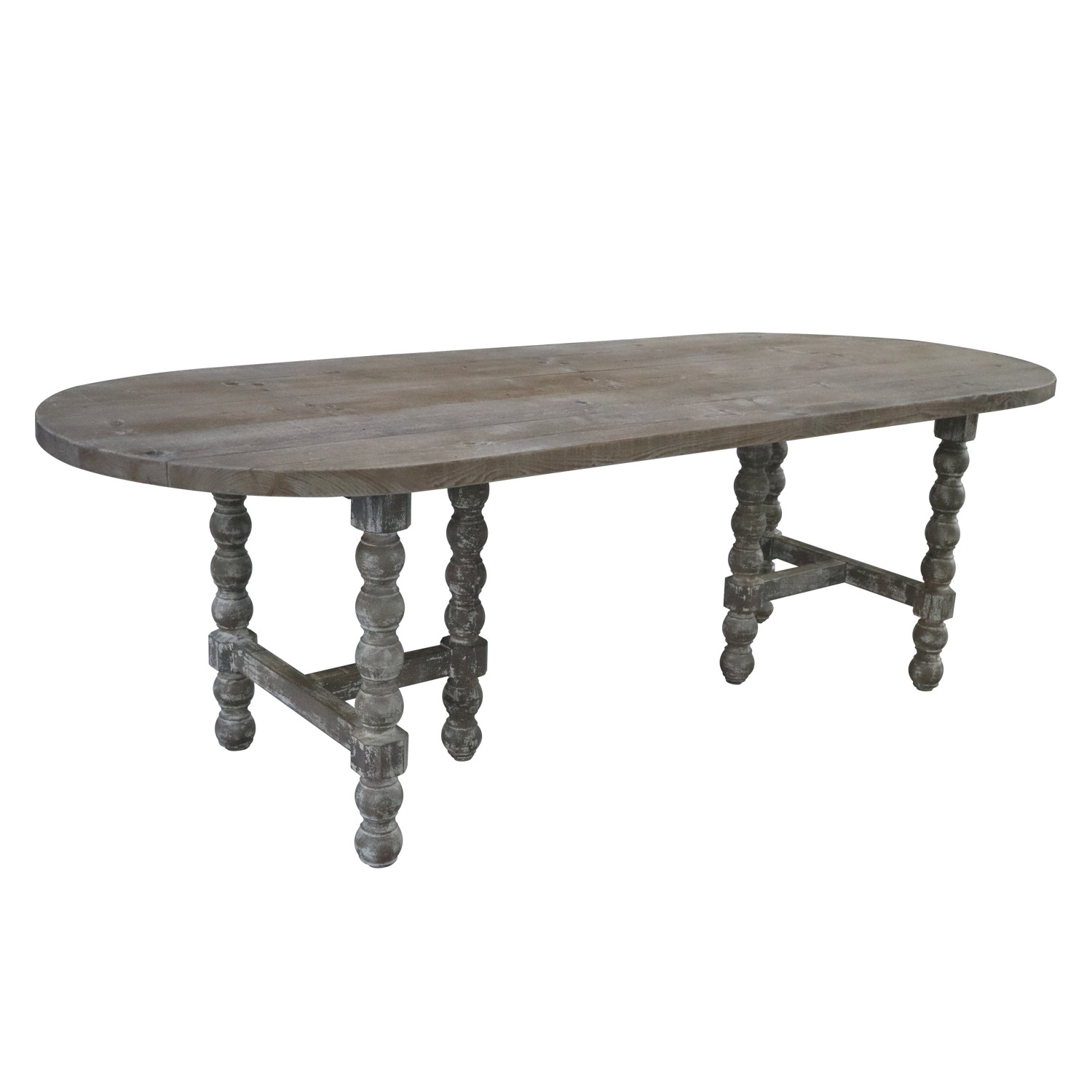 Catalog Name: 96-3/4"L x 37-1/4"W x 30"H Reclaimed Wood Table w/ Turned Legs, Whitewashed, KD, Truck Ship