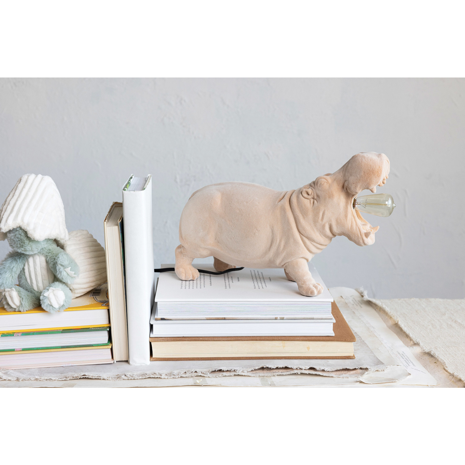 Catalog Name: 14"L x 5-1/2"W x 9-1/4"H Flocked Resin Hippo Table Lamp w/ Inline Switch, Blush Color (25 Watt Bulb Maximum)