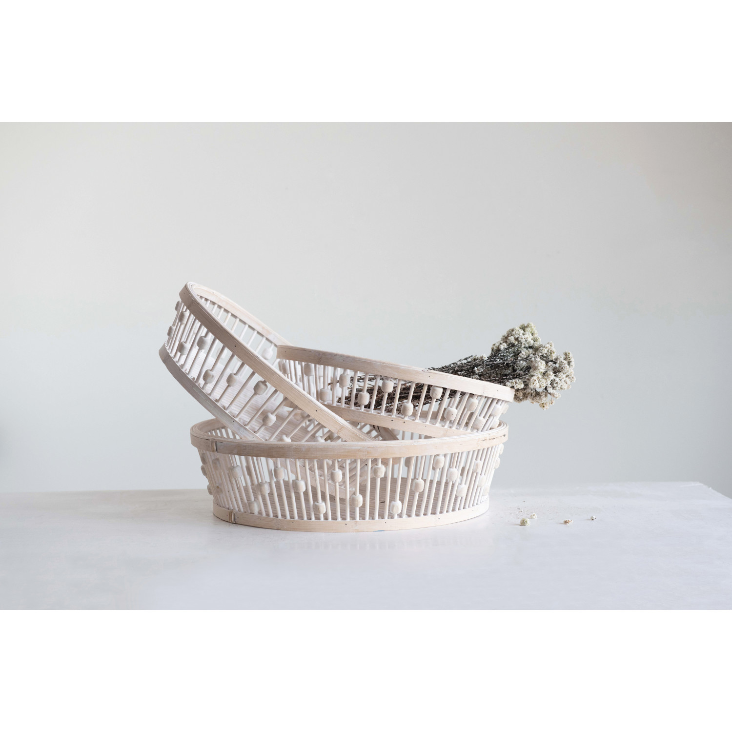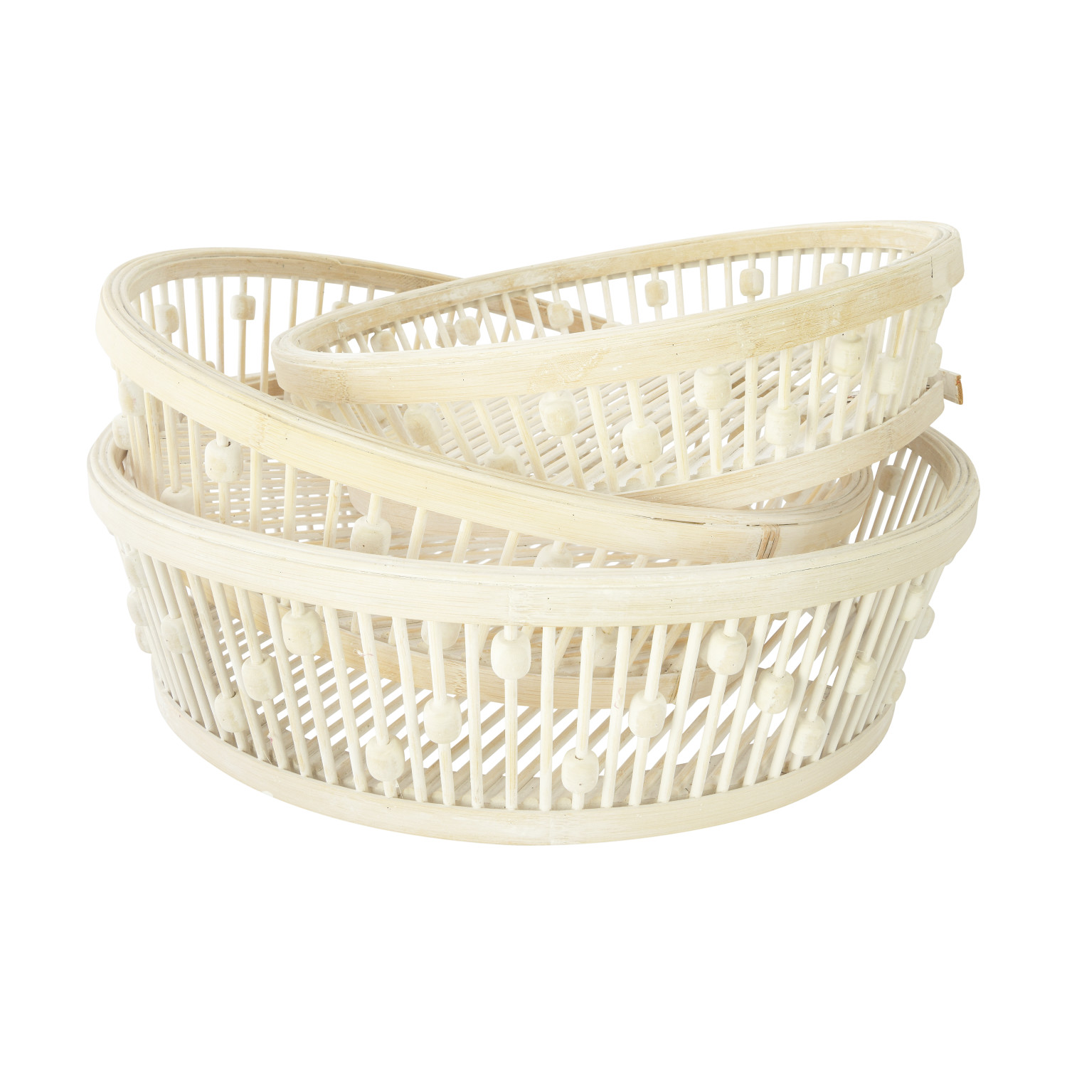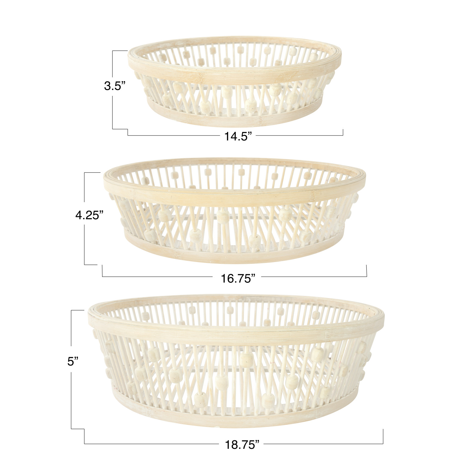 Catalog Name: 18-1/2" Round, 16" Round & 14" Round Bamboo Wood Baskets, White, Set of 3