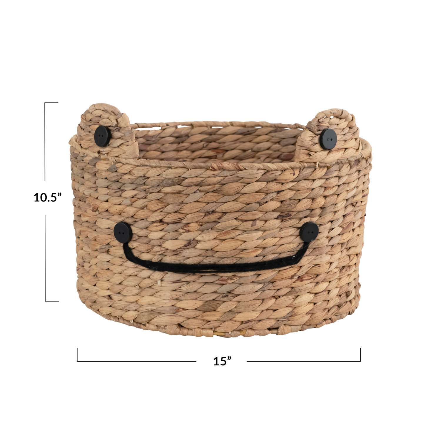 Hand-woven water hyacinth frog basket in a natural finish. Add a whimsical touch to a child's room with this intricately hand-woven basket. Made from 100% water hyacinth. Curate a space that reflects your unique sense of style with intentionally designed home décor.
