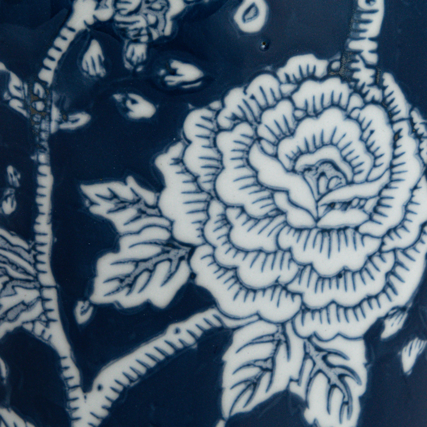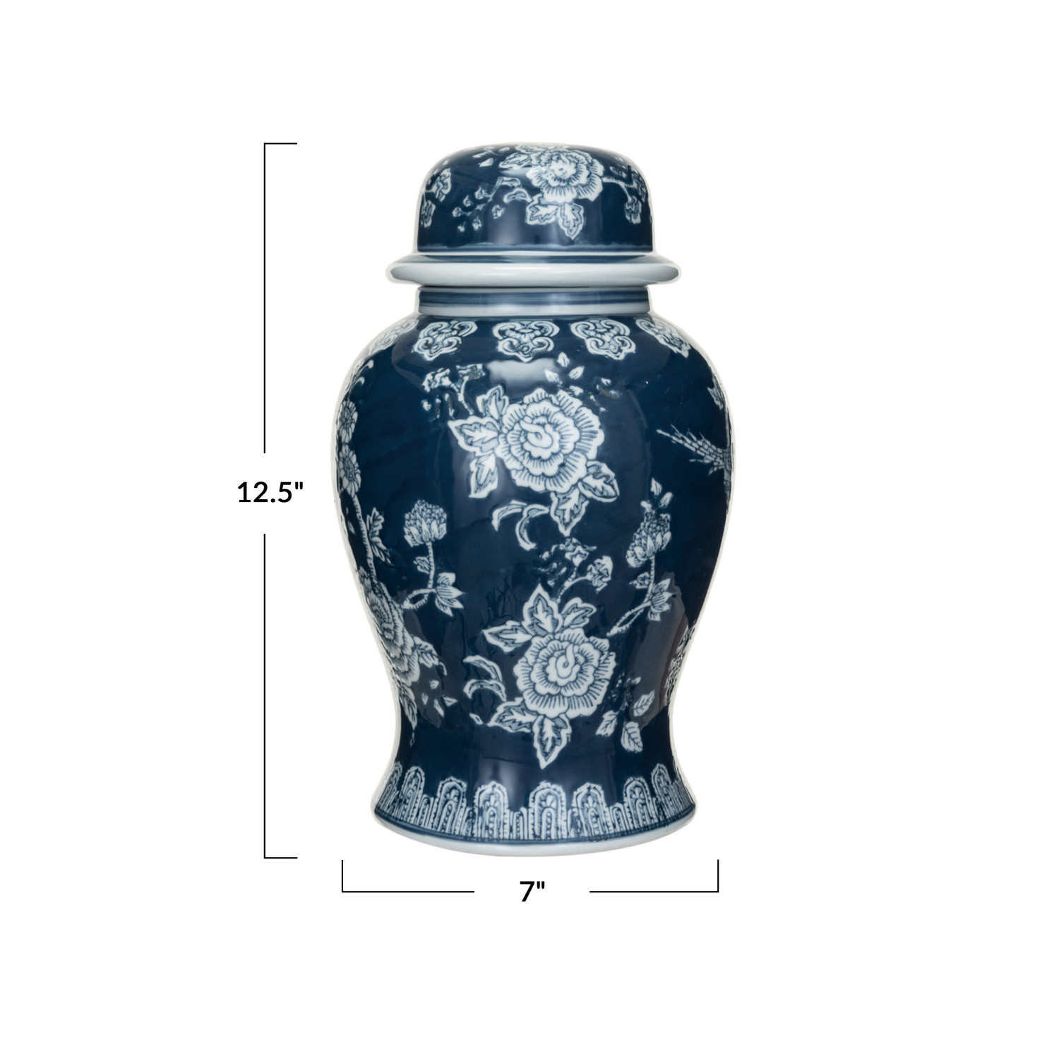 Catalog Name: 7" Round x 12-1/2"H Decorative Hand-Painted Ceramic Ginger Jar w/ Flowers, Blue & White