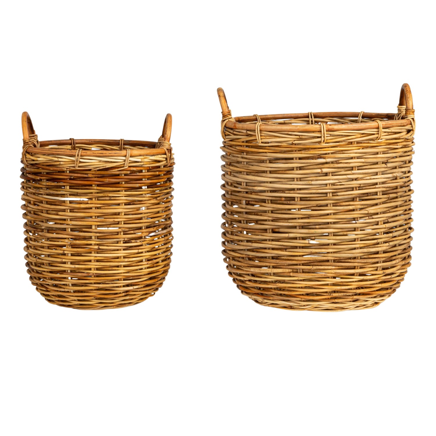 Catalog Name: 15-1/2" Round x 14-3/4"H & 12" Round x 13"H Hand-Woven Rattan Baskets w/ Handles, Natural, Set of 2