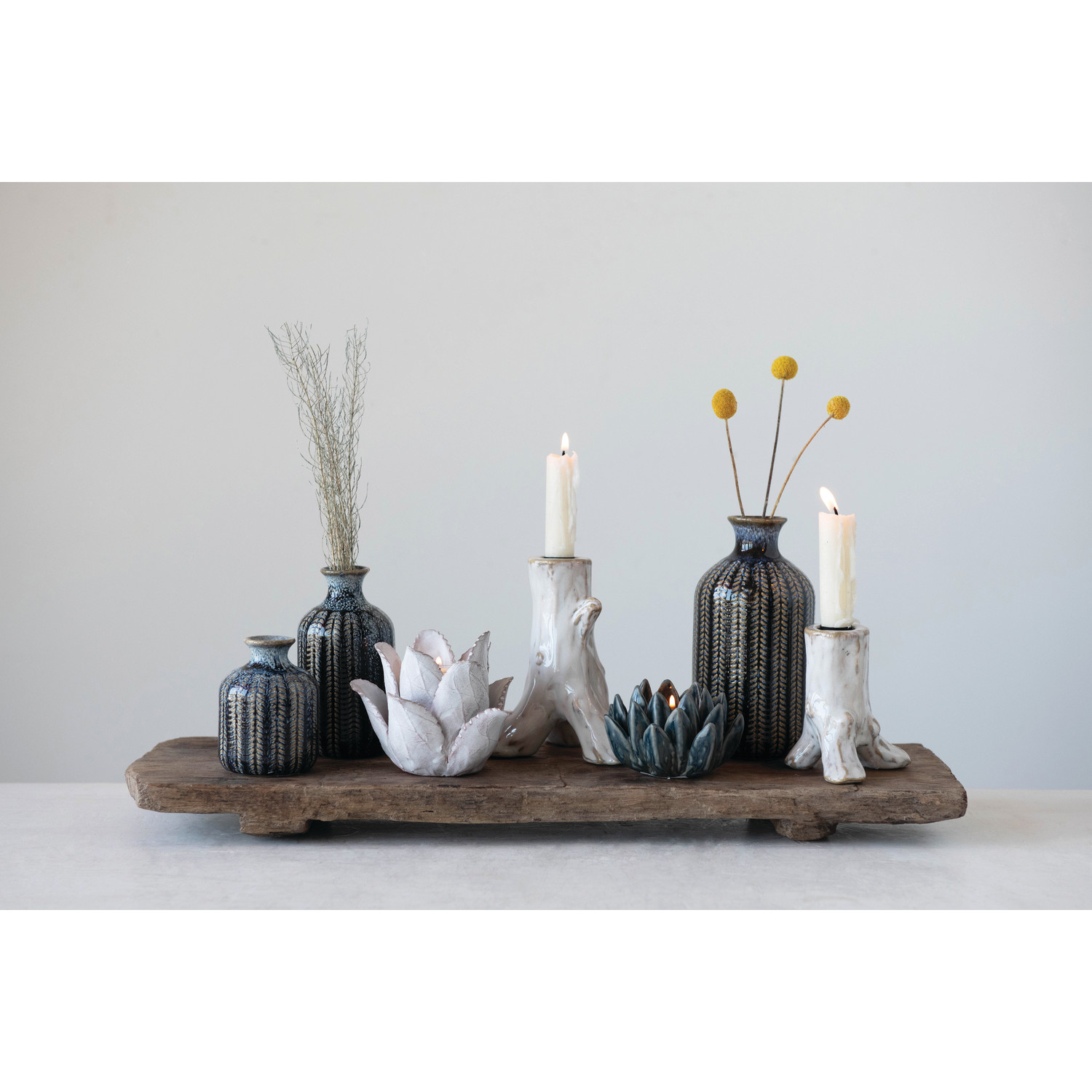 Catalog Name: 4" Round x 3"H Handmade Terra-cotta Flower Tealight Holder, White