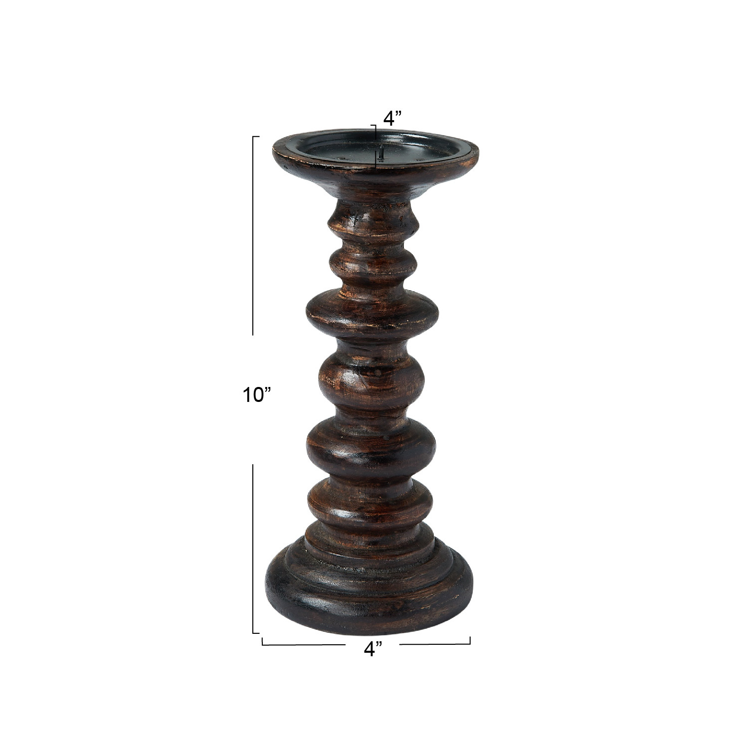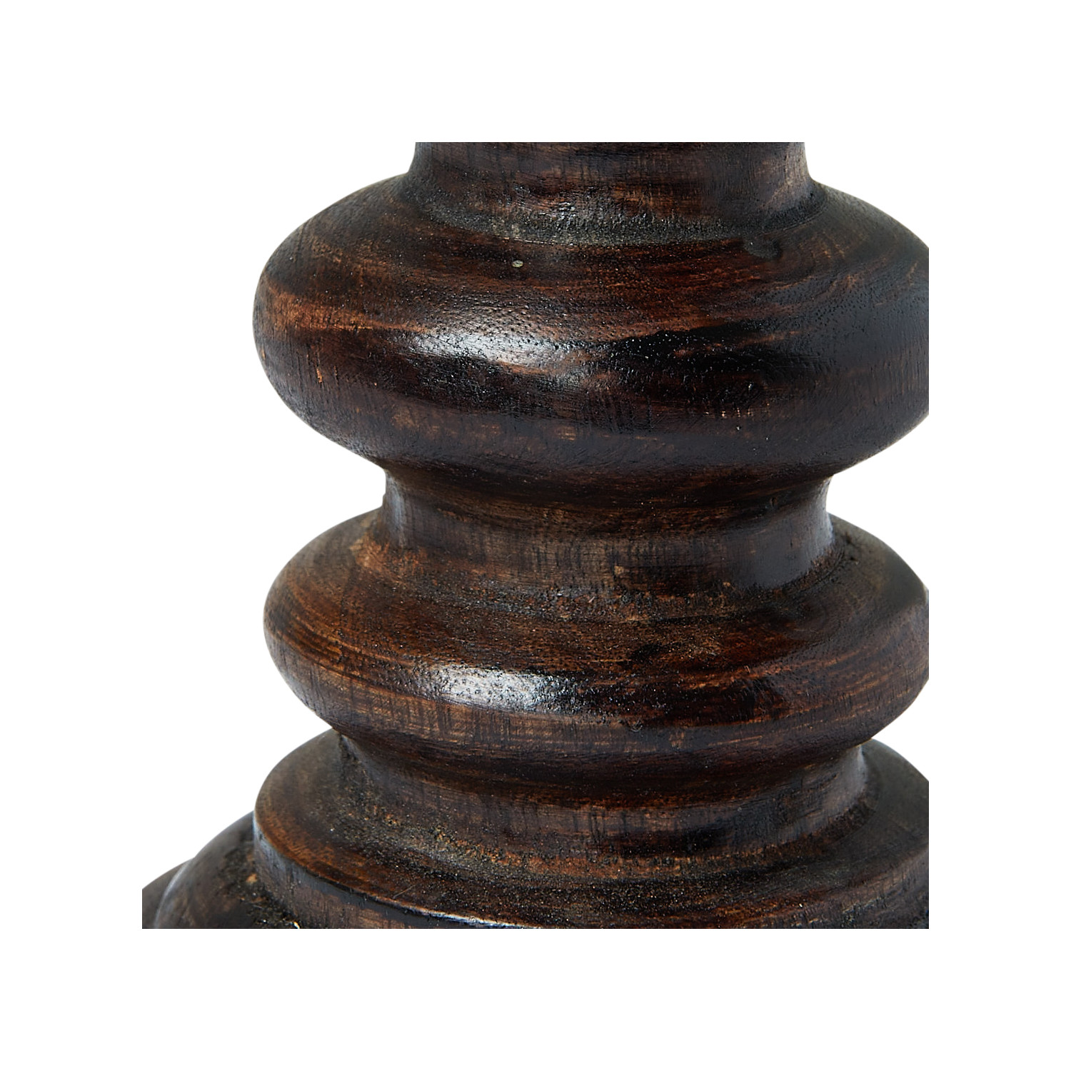 Catalog Name: 4" Round x 9-1/4"H Hand-Carved Mango Wood Candle Holder, Walnut Finish (Holds 3" Pillar)
