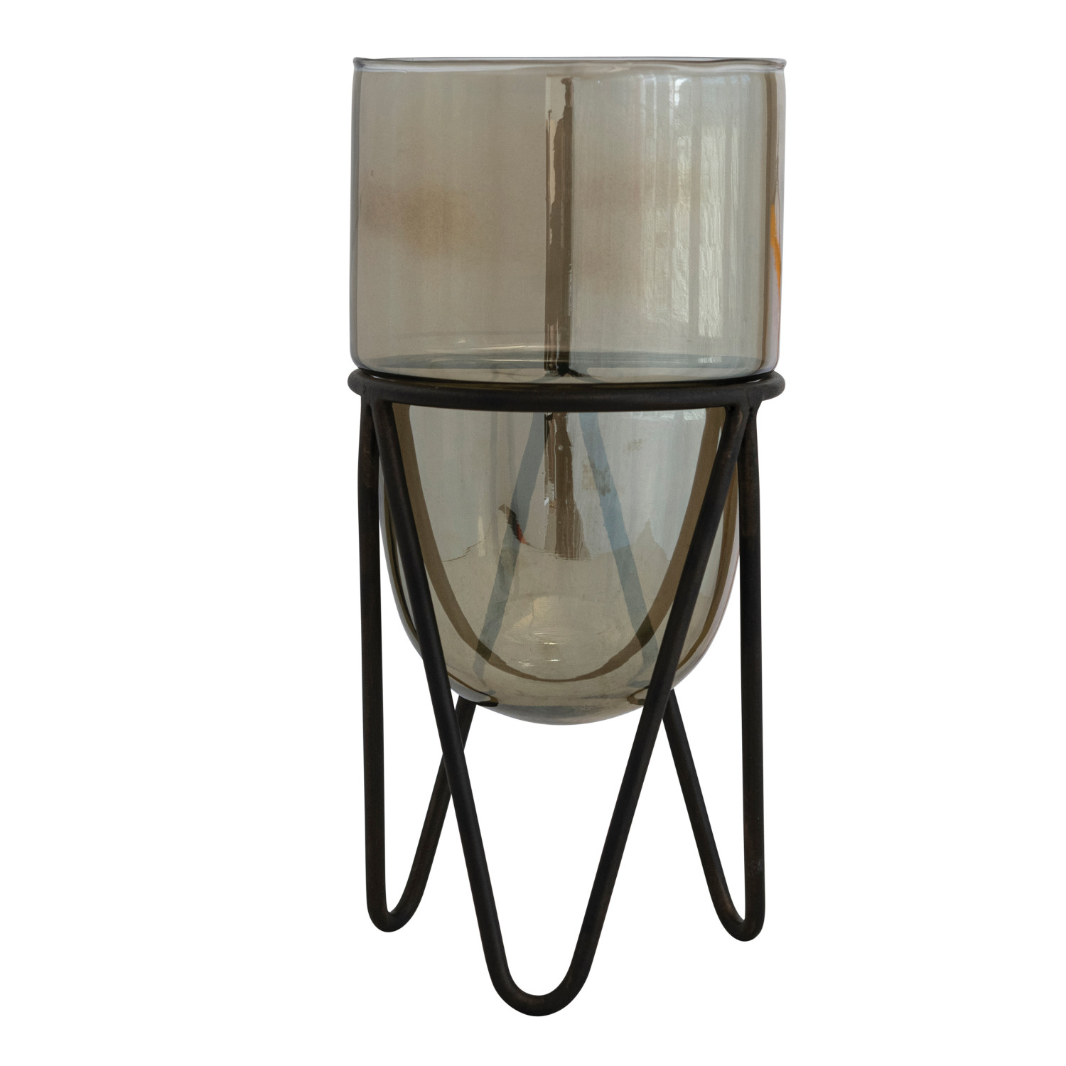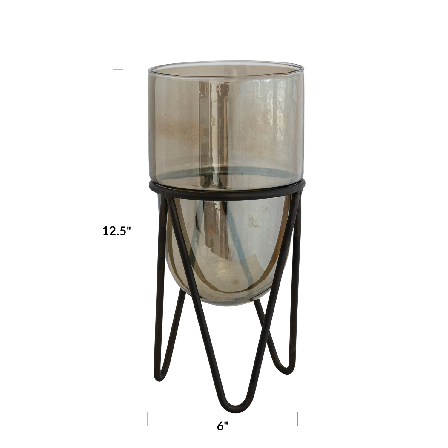 Catalog Name: 6" Round x 12-1/2"H Iridescent Glass Candle Holder w/ Metal Stand, Matte Brown, Set of 2 (Holds 5" Pillar)